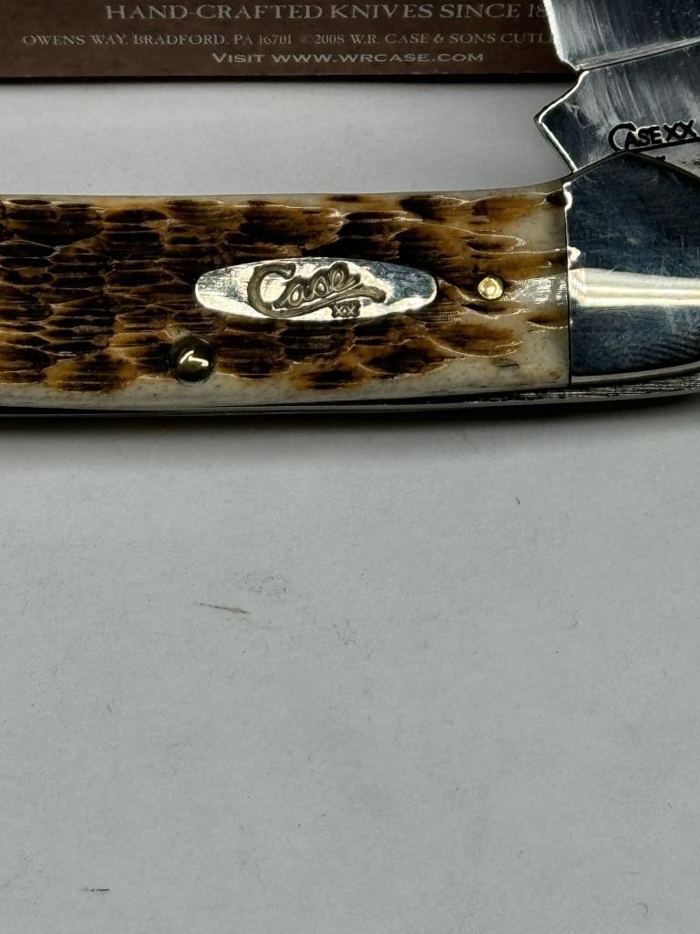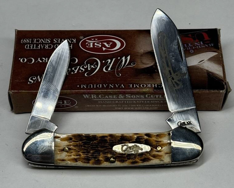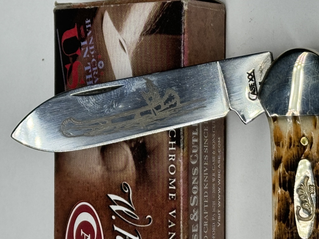 CASE AMBER JIGGED BONE CANOE CS KNIFEHIGHLY DETAILED WITH ORIGINAL BOX ITEM NUMBER #00263