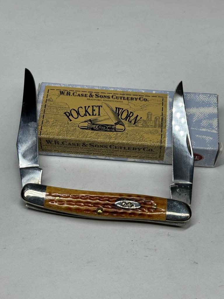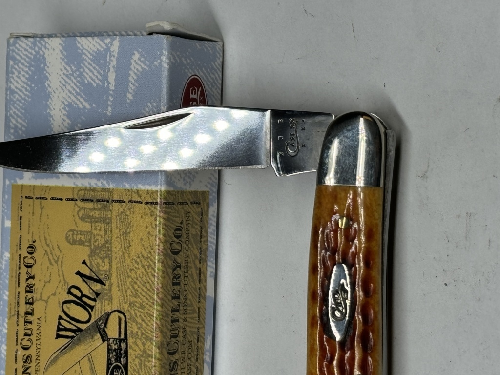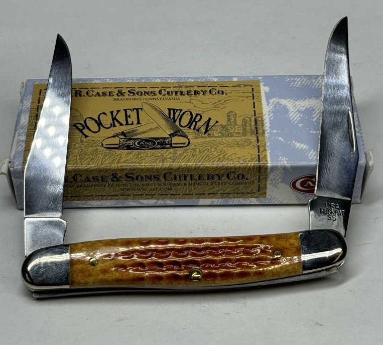 CASE POCKET WORN HARVEST ORANGE BONE MUSKRAT KNIFEDISCONTINUED KNIFE WITH ORIGINAL BOX ITEM #07406