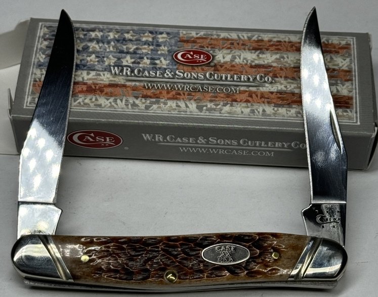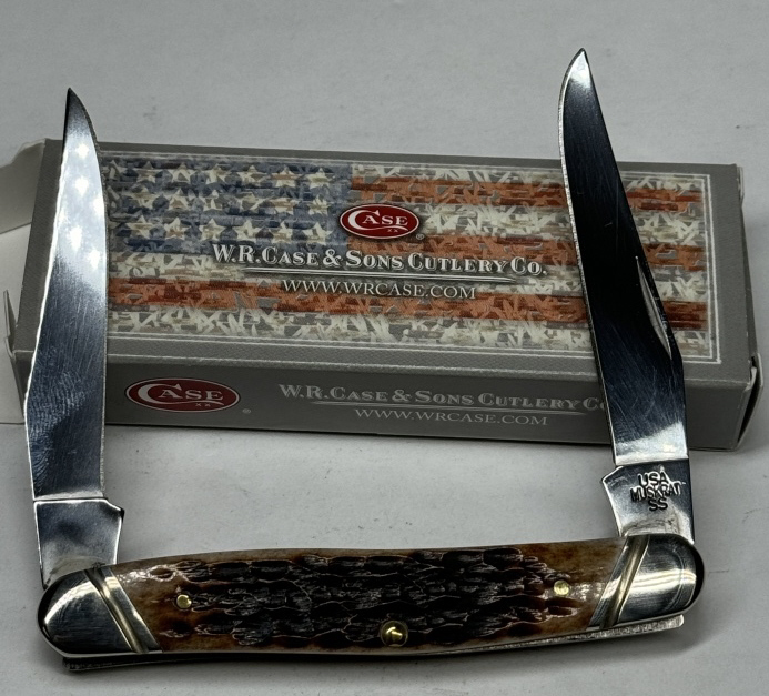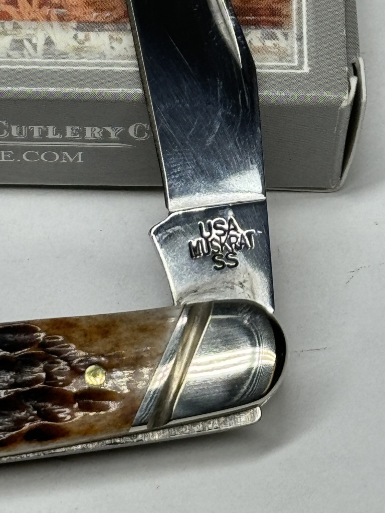 CASE XX MUSKRAT BROWN JIGGED FOLDING KNIFE WITH ORIGINAL BOX ITEM #27113