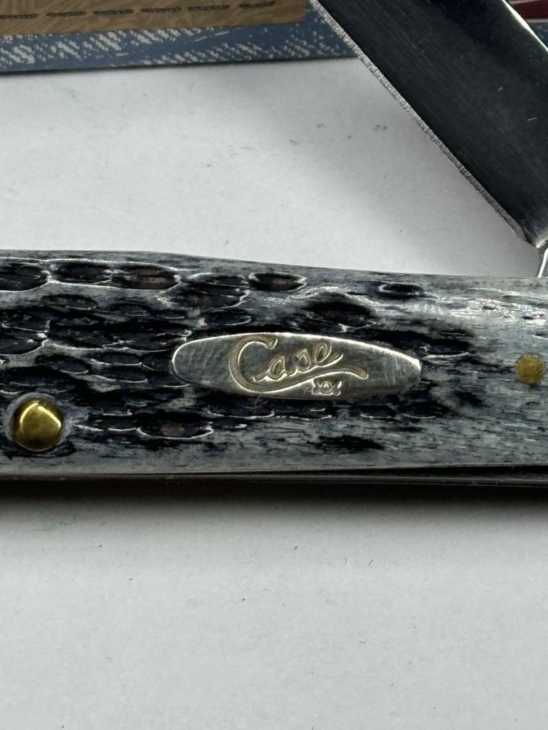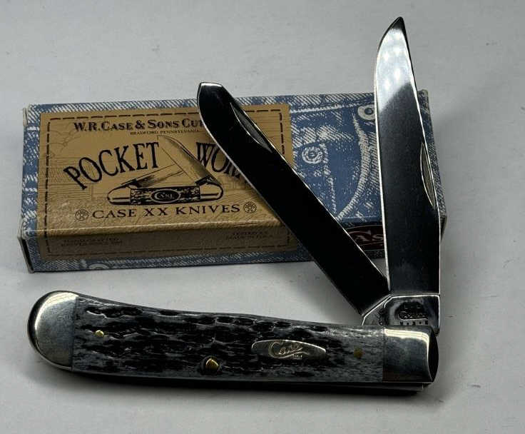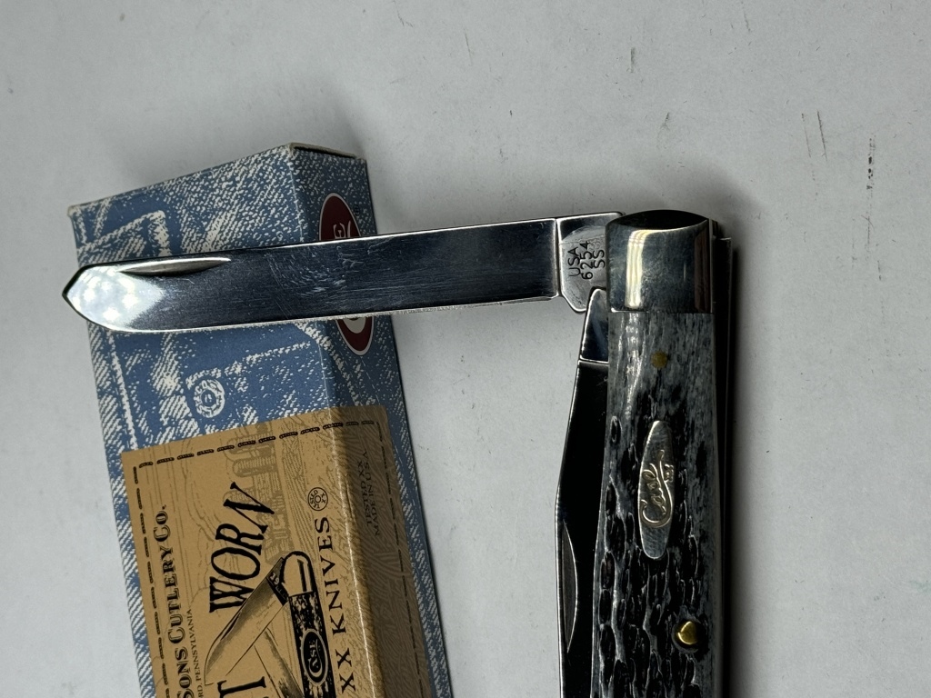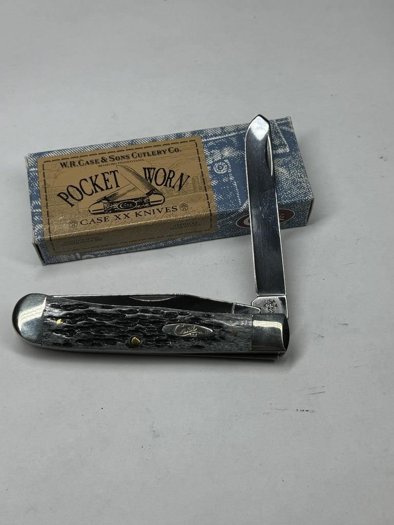 CASE XX 2002 POCKET WORN BLACK BONE TRAPPER KNIFEWITH ORIGINAL BOX ITEM #03550