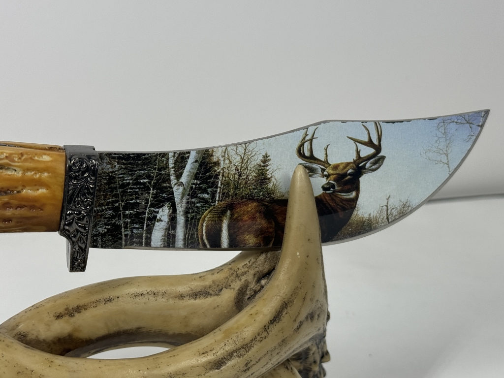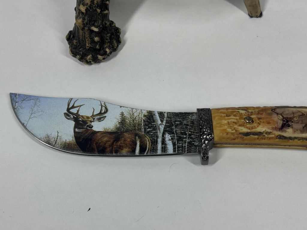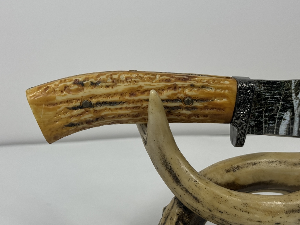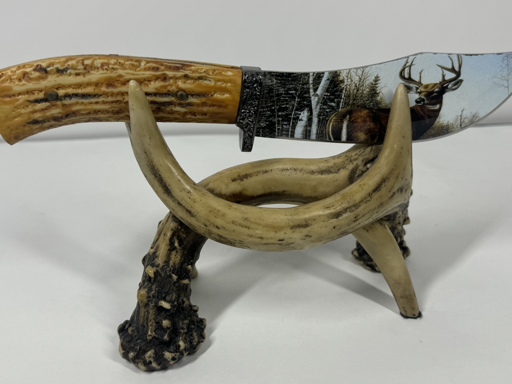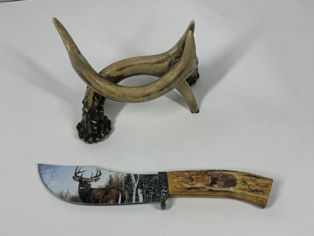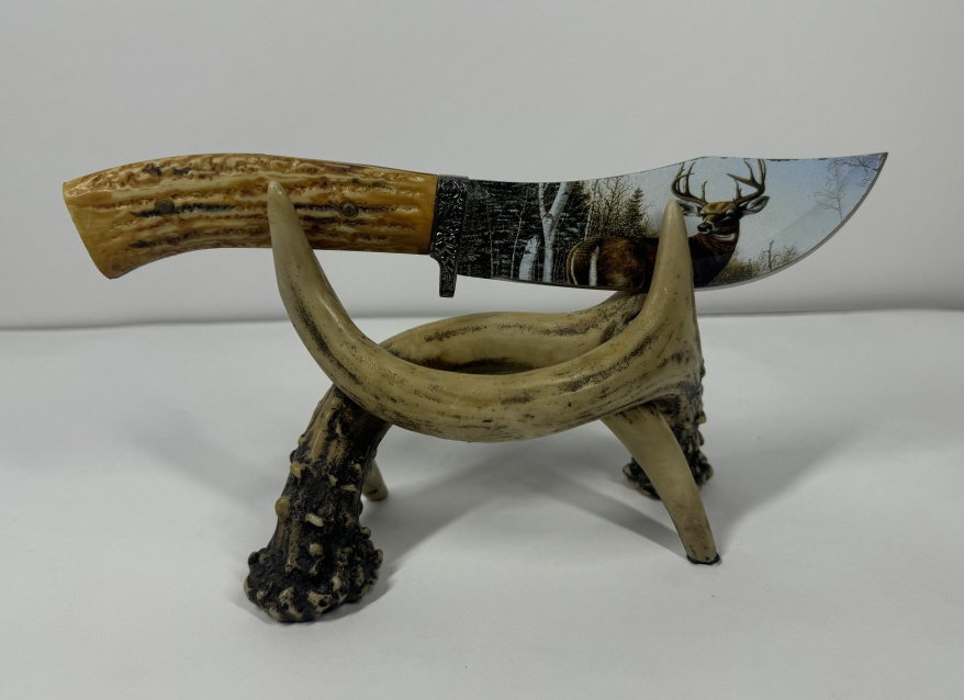 DEER ANTLERDISPLAY & KNIFEHIGHLY DETAILED KNIFE WITH ANTLER HANDLE NO BOX