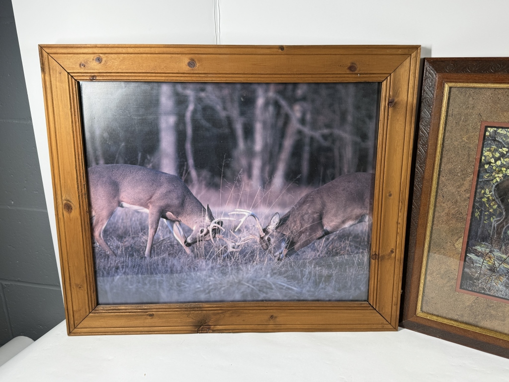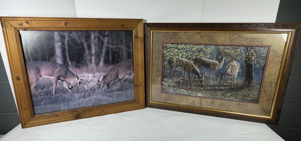 TWO FRAMED DEER PICTURES