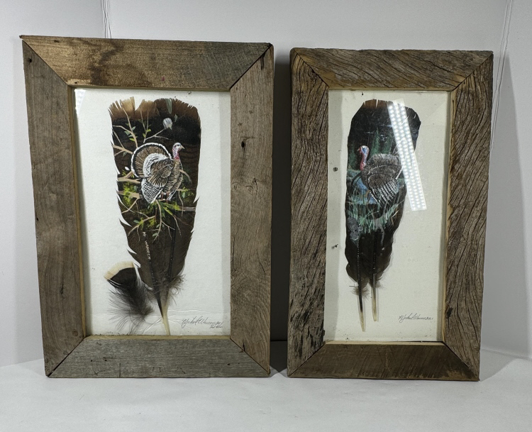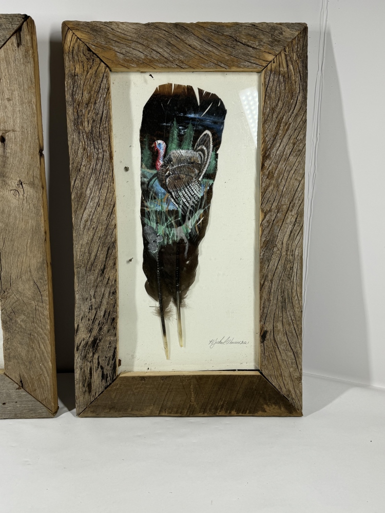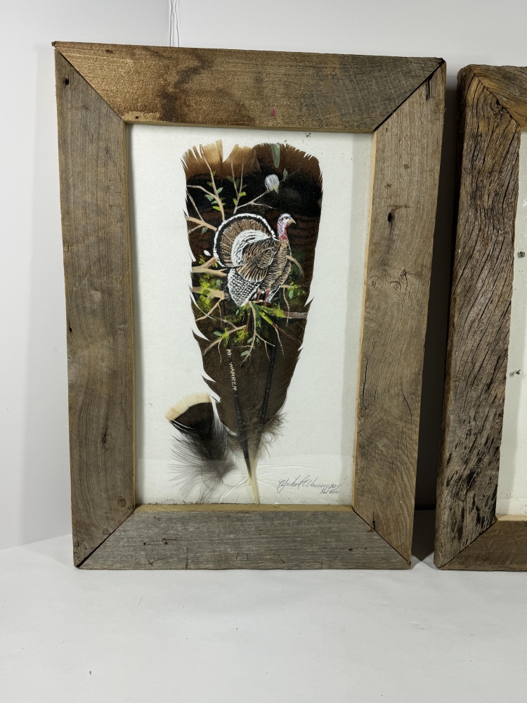 HIGHLY DETAILED HAND PAINTED TURKEY PAINTINGS ON FEALTHERS