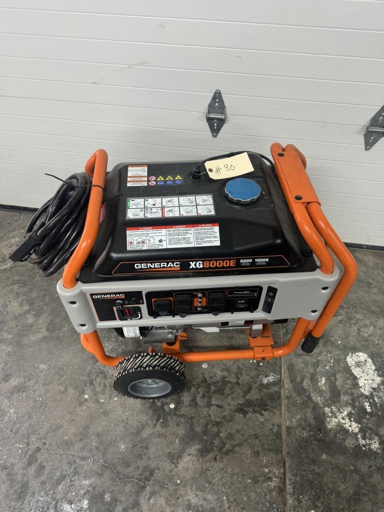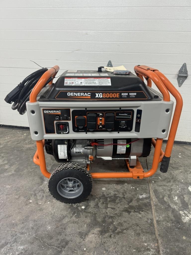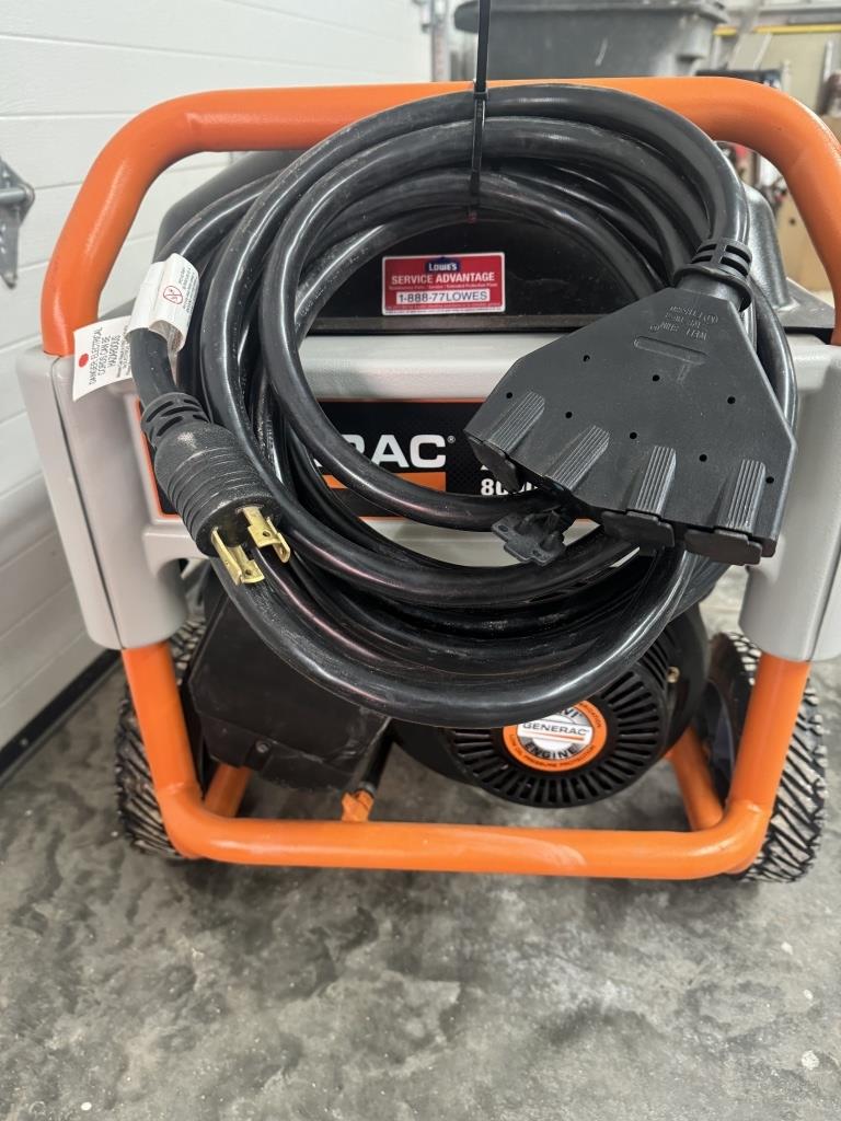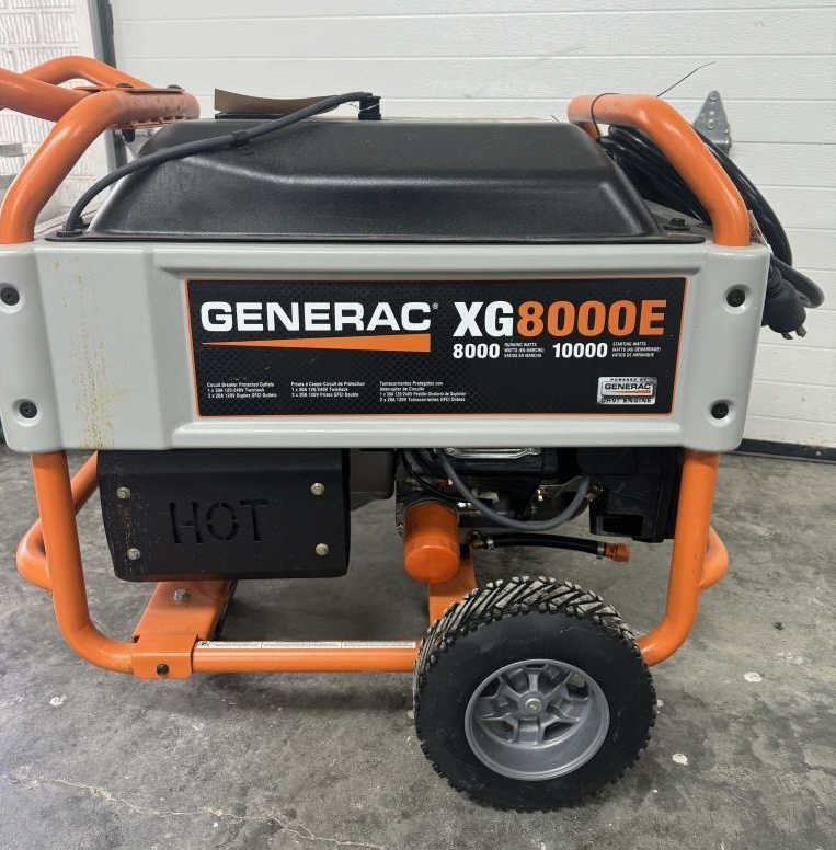 GENERAC XG 8000E GENERATOR WITH 17.7 HOURS, ELECTRIC START & PULL START, HAS 10,000 STARTING WATTS & 80000 RUNNING WATTS LIKE NEW COMES WITH HEAVY DUTY EXTENTION CORD