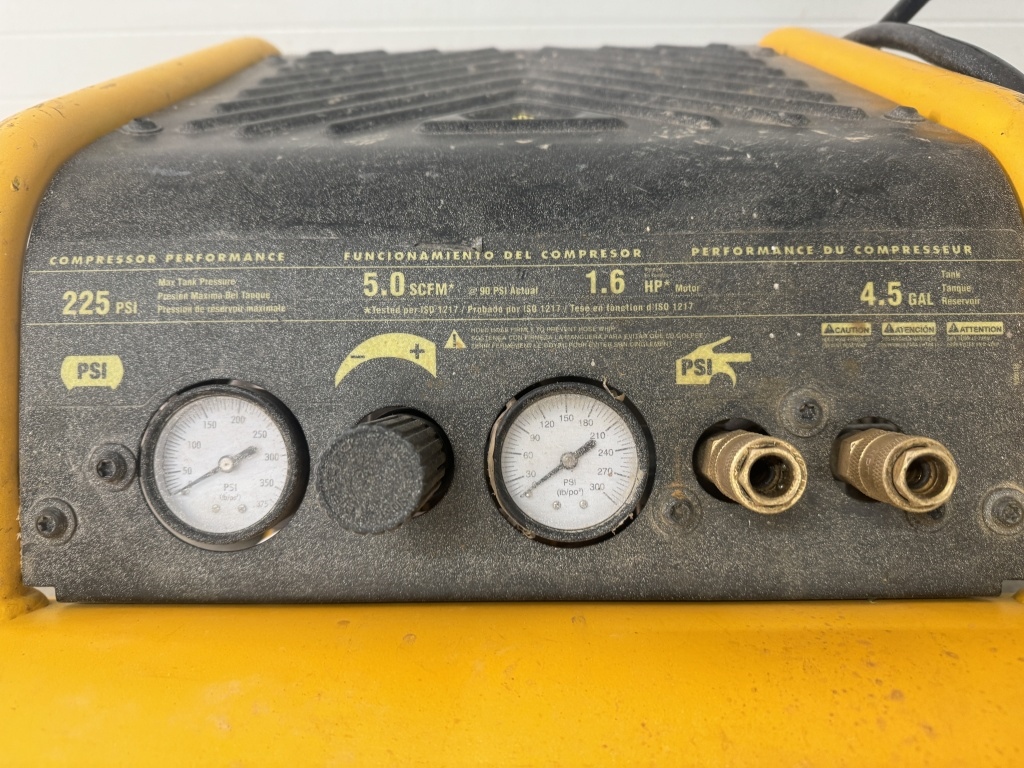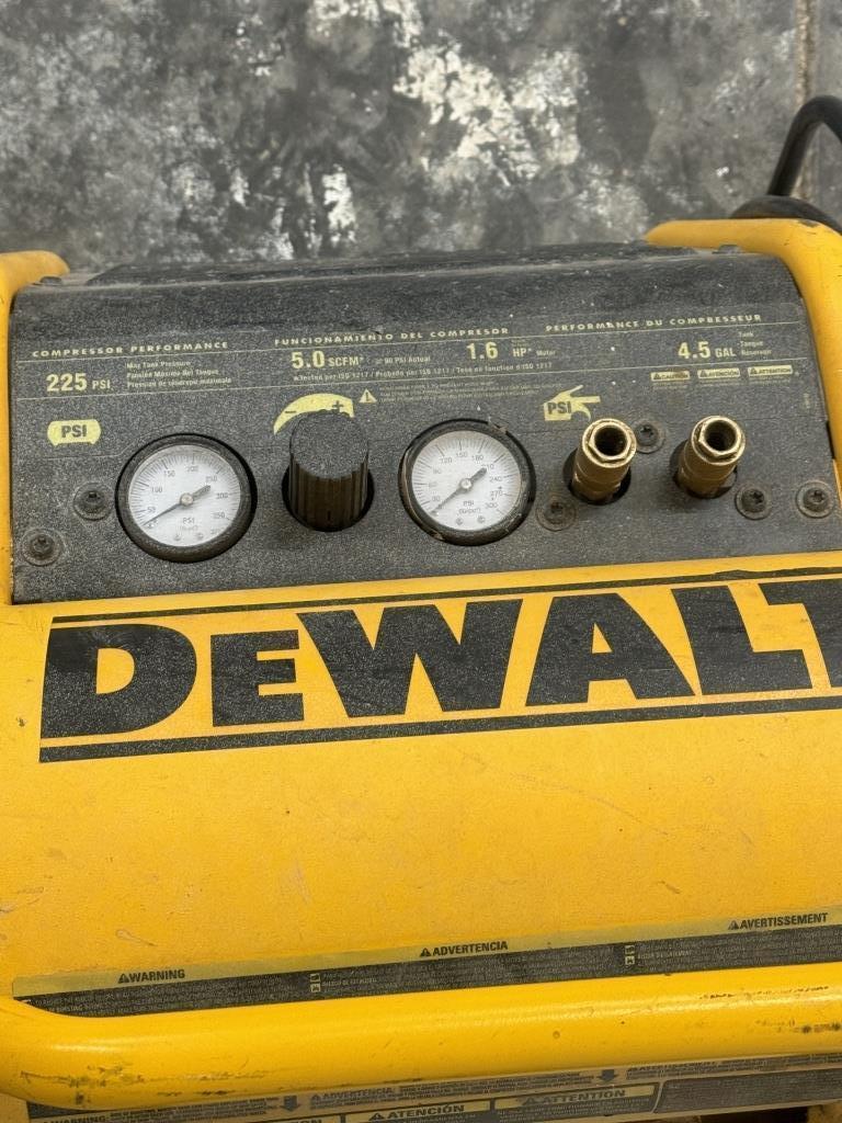 DEWALT AIR COMPRESSOR WITH A 4.5 GALLON TANK AND UP TO 225 PSI.
