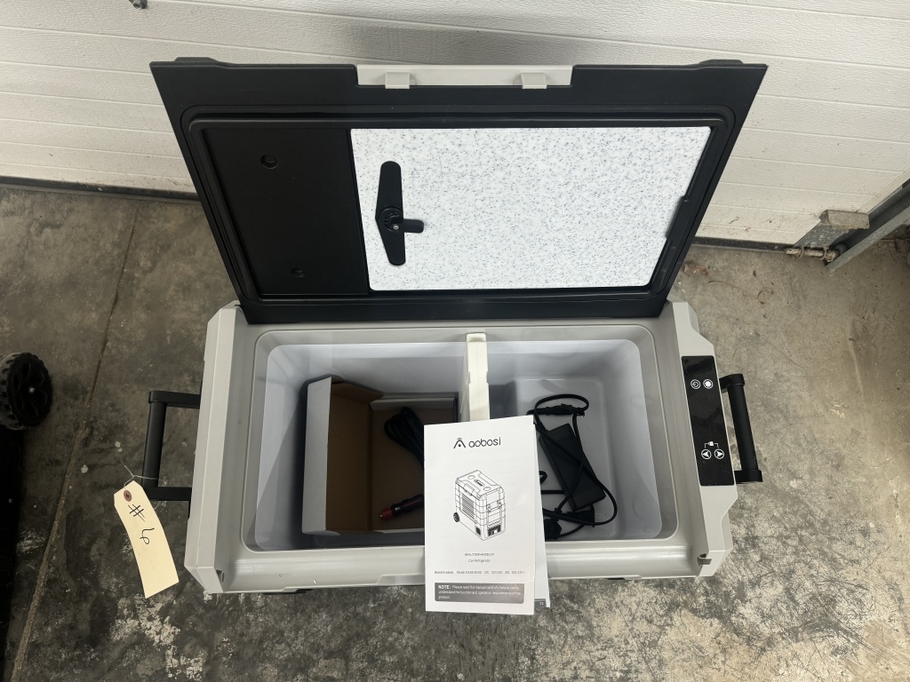 DIGITAL AOBOSI 12V/ 110 V COOLER NEVER USED STILL WITH OWNERS MANUAL AND BOTH CHARGERS