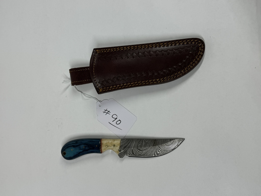 DAMASCUS HANDFORGED KNIFE WITH LEATHER SHEATH