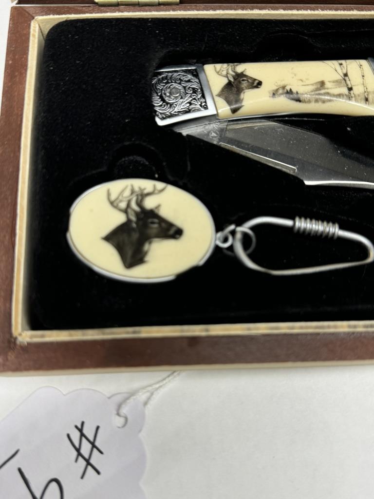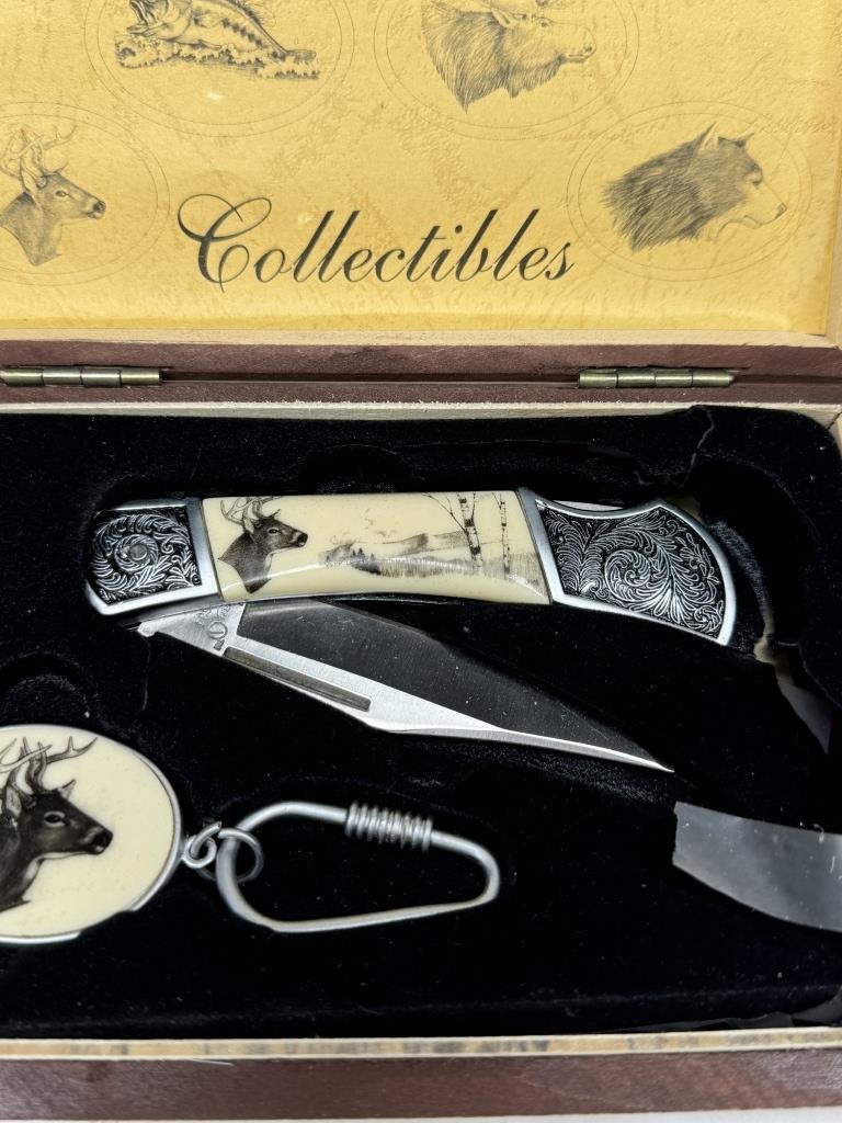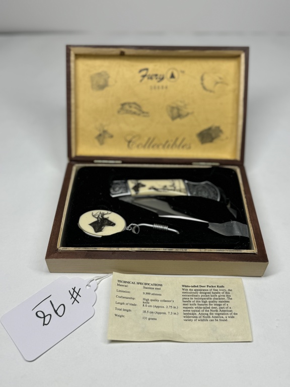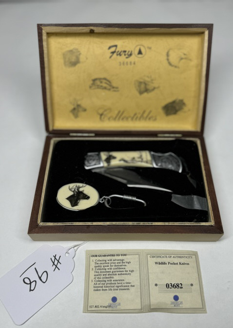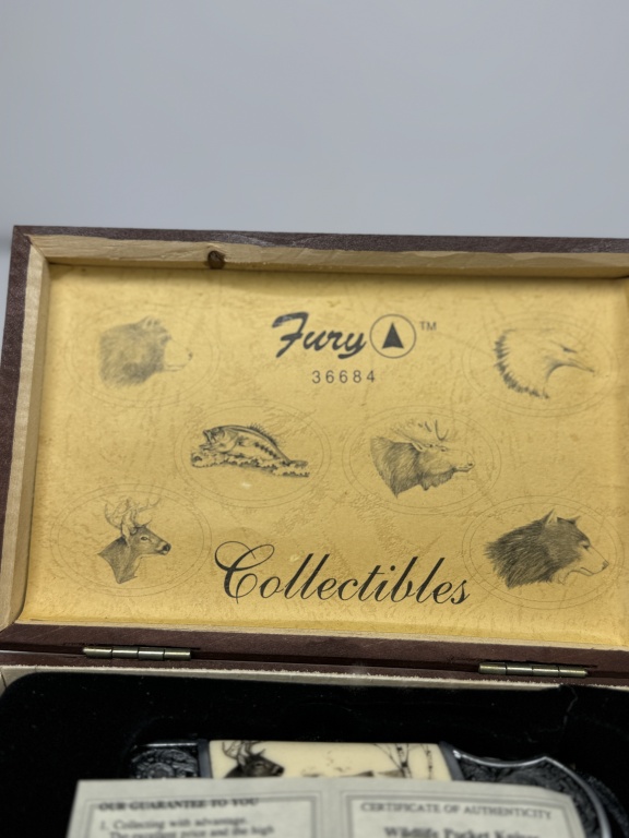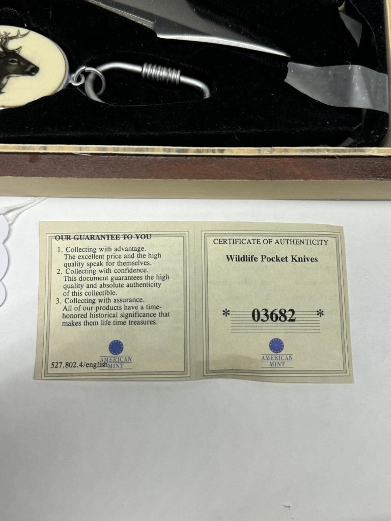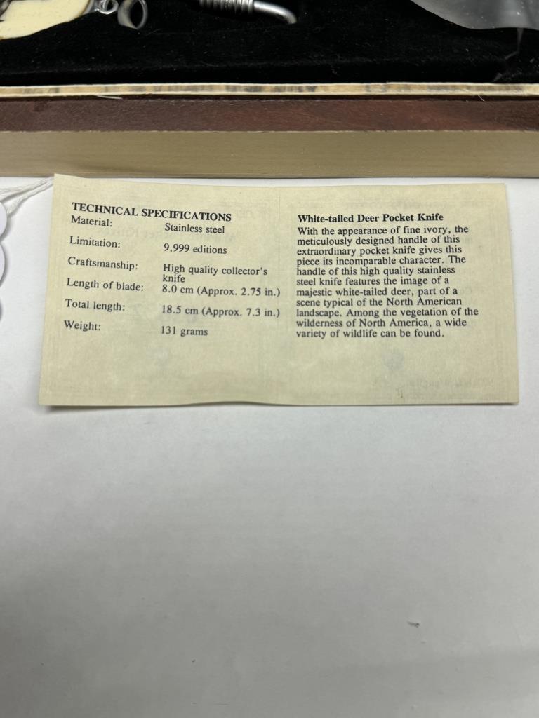WHITE-TAILED DEER POCKET KNIFE SETFURY COLLECTIBLES DAMAGE TO INSIDE OF BOXCERTIFICATE OF AUTHENTICITY WILDLIFE POCKET KNIVES #03682