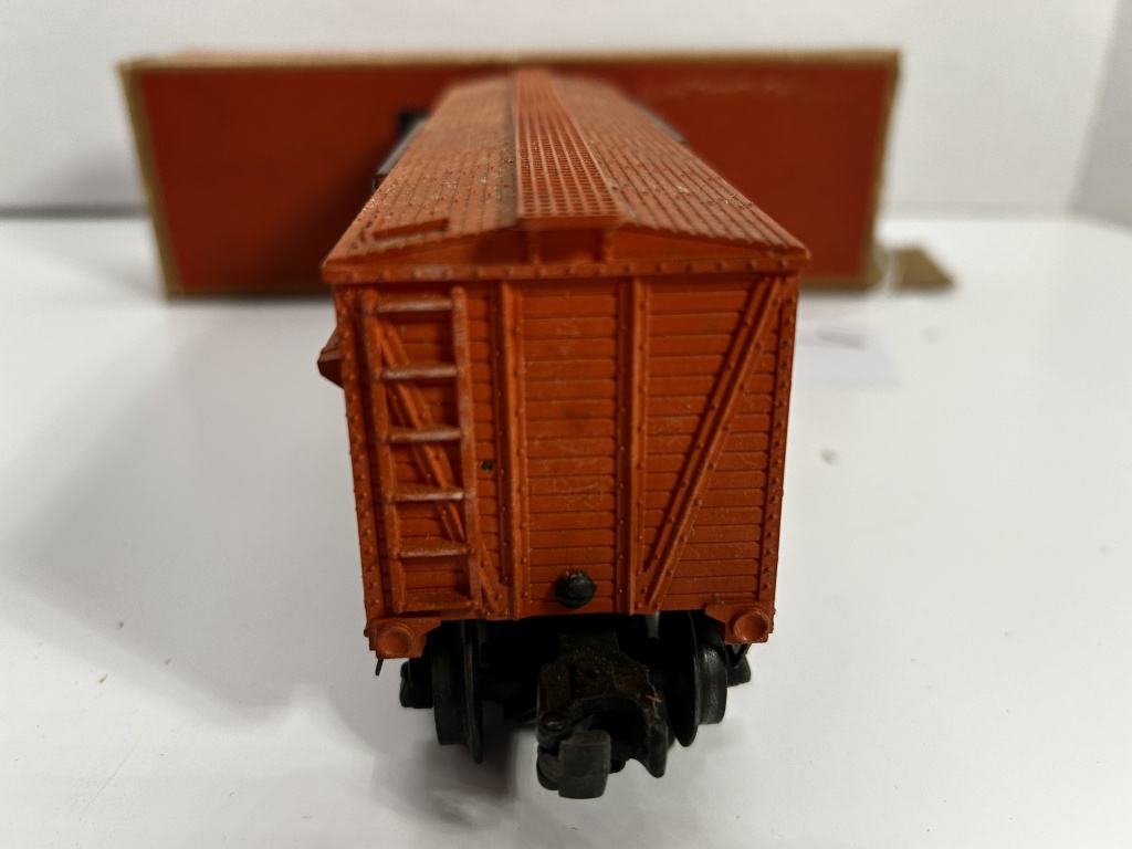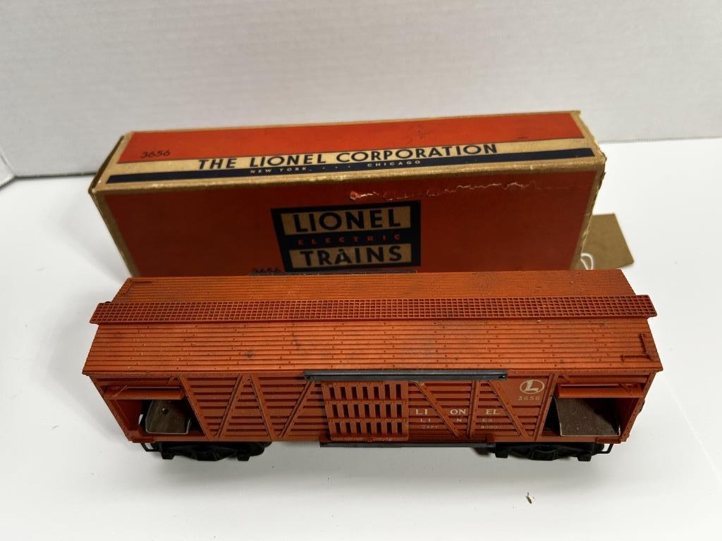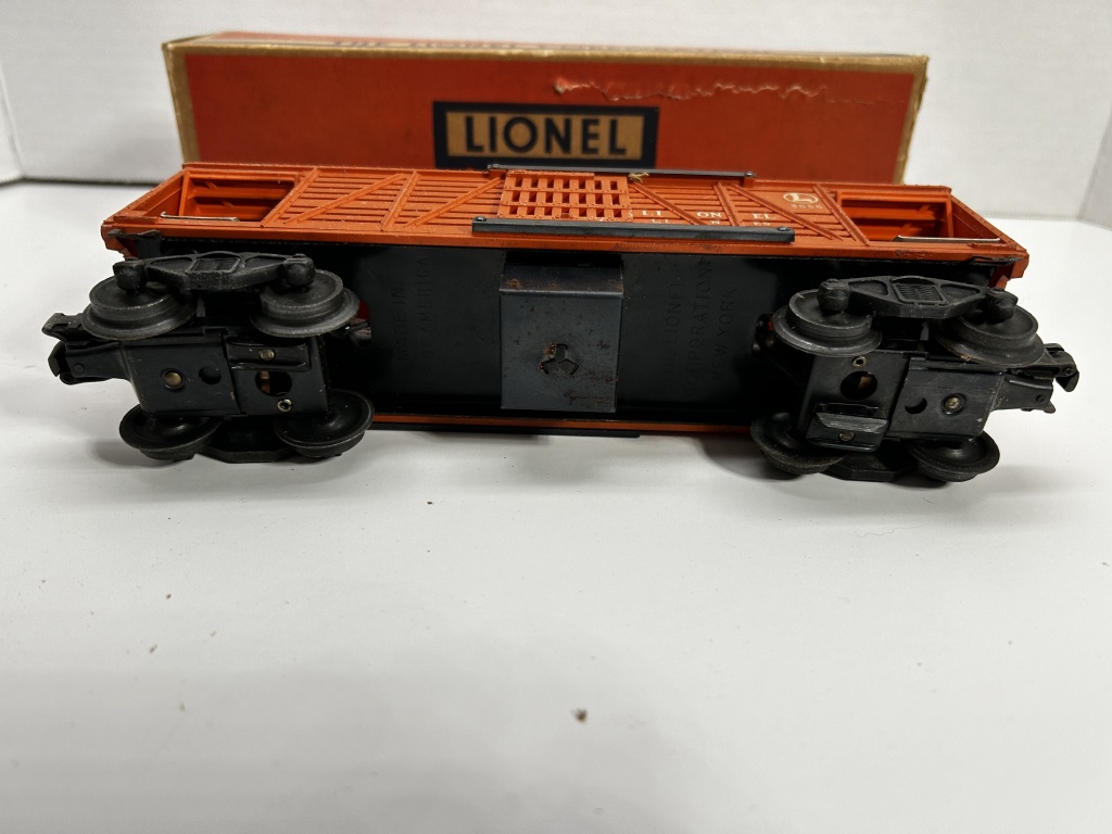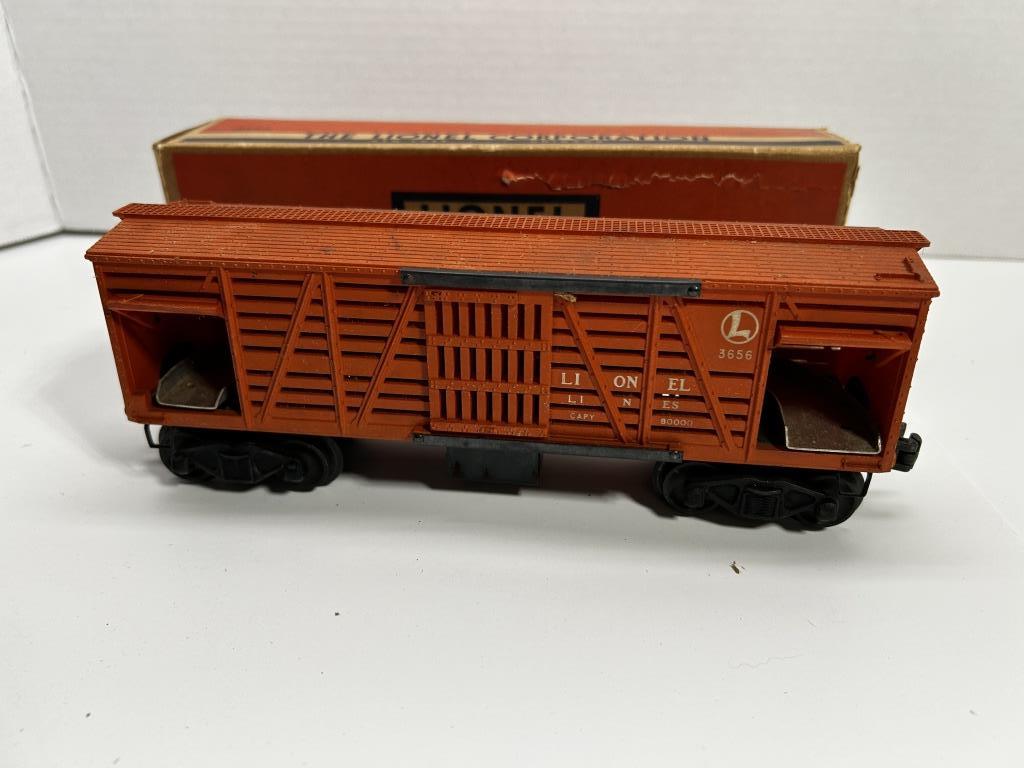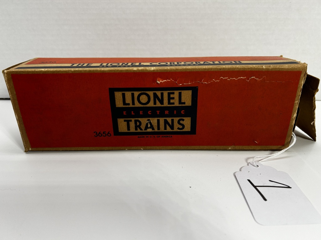 LIONEL ELECTRIC TRAINS 3656 CATTLE CAR IN BOX. BOX HAS SOME WEAR AS SHOWN