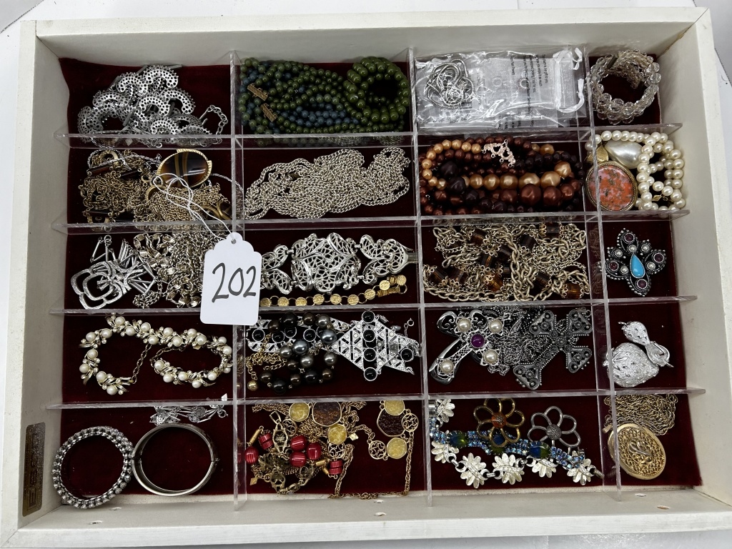 COSTUME JEWELRY - ASSORTMENT PINS/NECKLACES/BRACEL