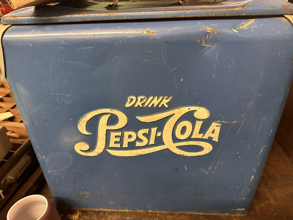 BLUE COLORED PEPSI COOLER WITH METAL HANDLE