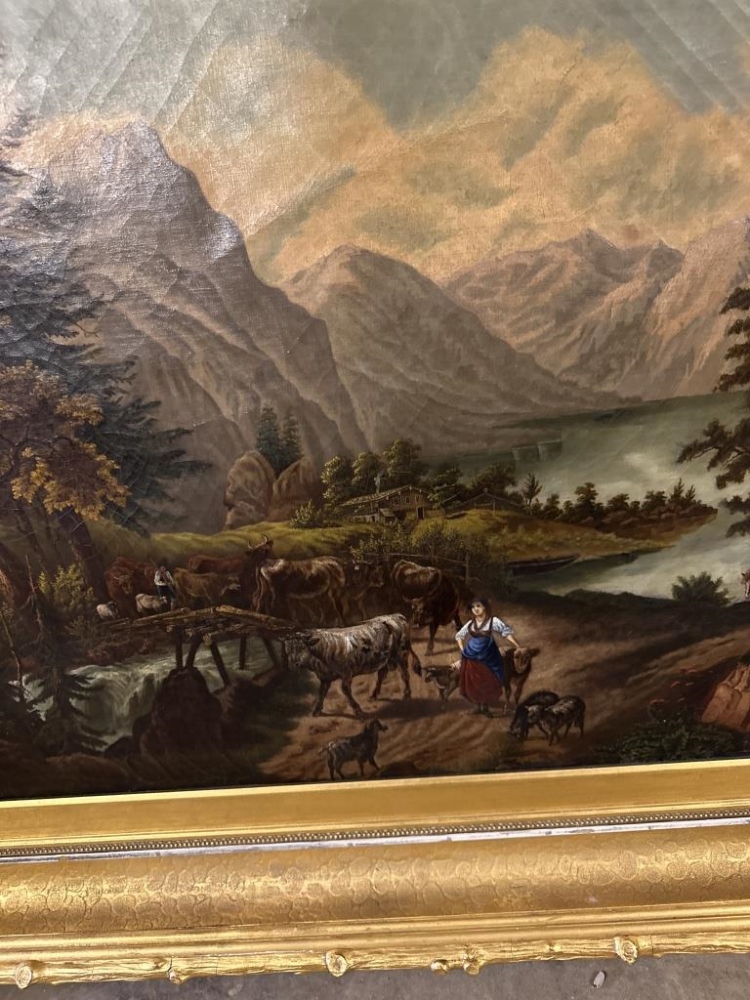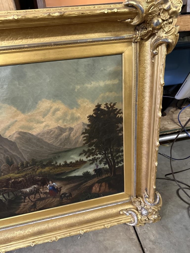 LARGE GOLDEN FRAMED LANDSCAPE PAINTING, PAINTING PRINT ON CANVAS