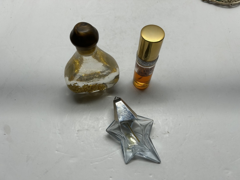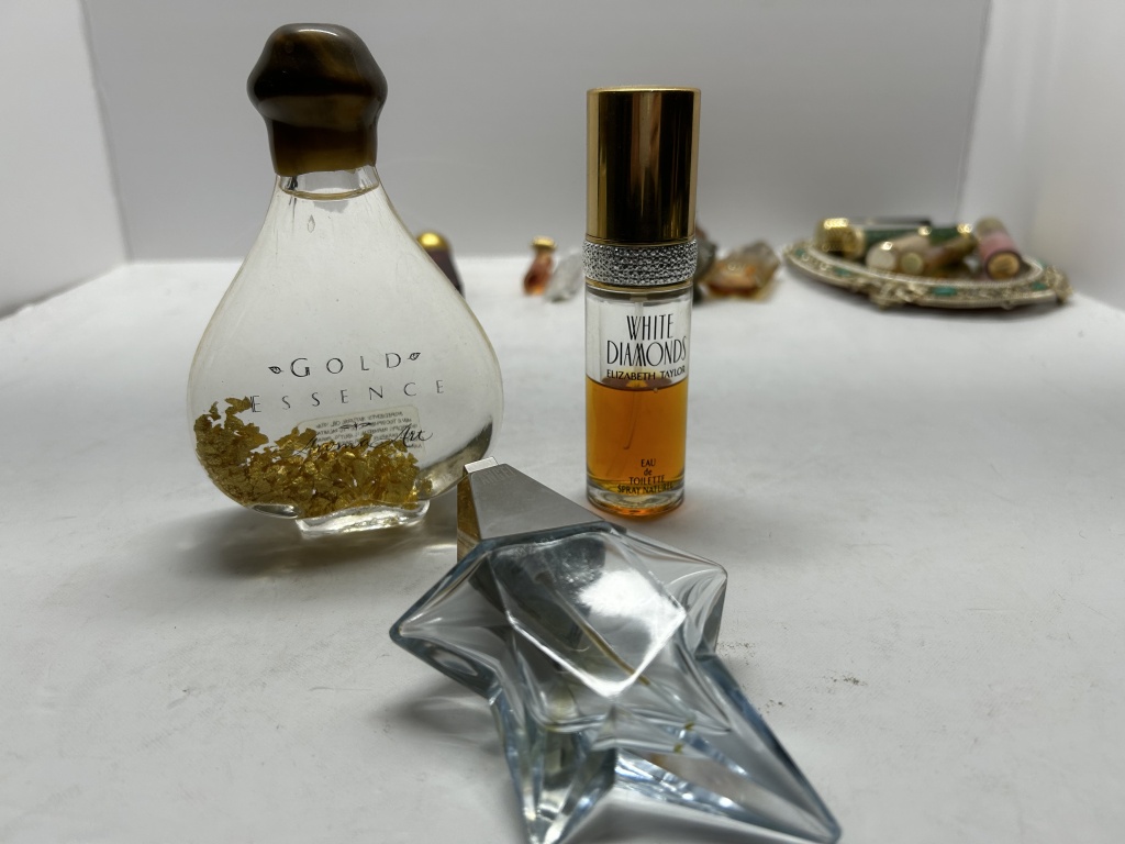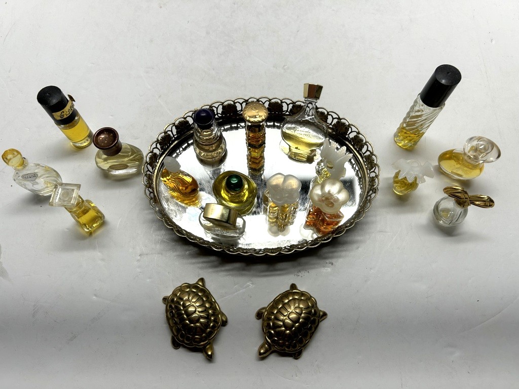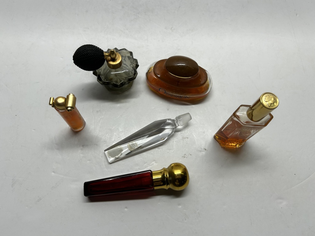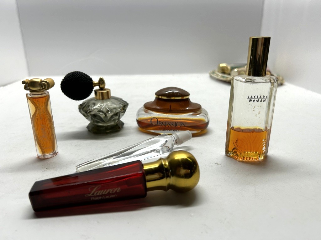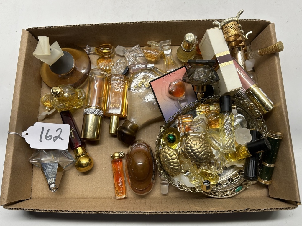 BOX OF VINTAGE PERFUME BOTTLES, GLASS PERFUMES BOTTLE, SOME FULL