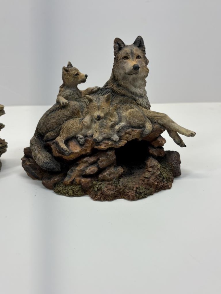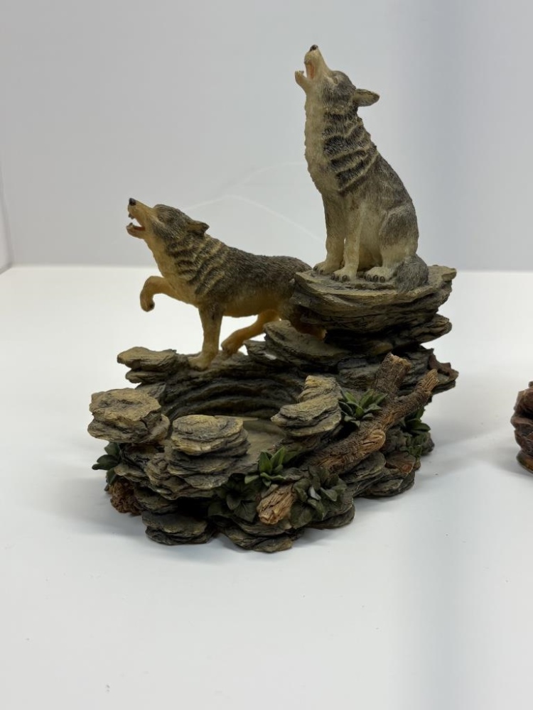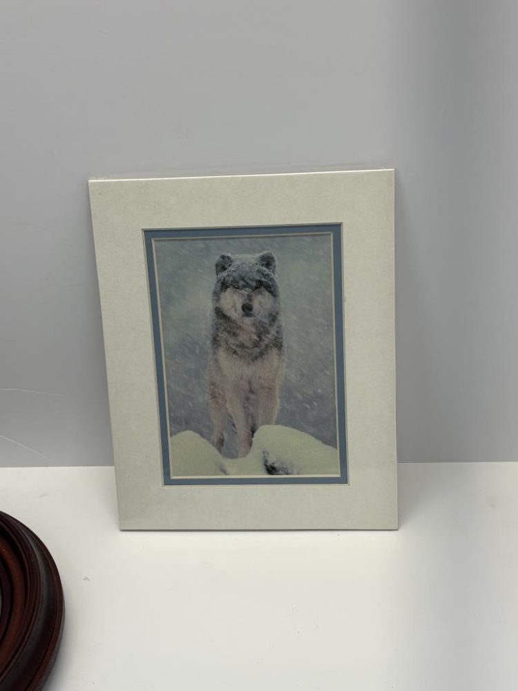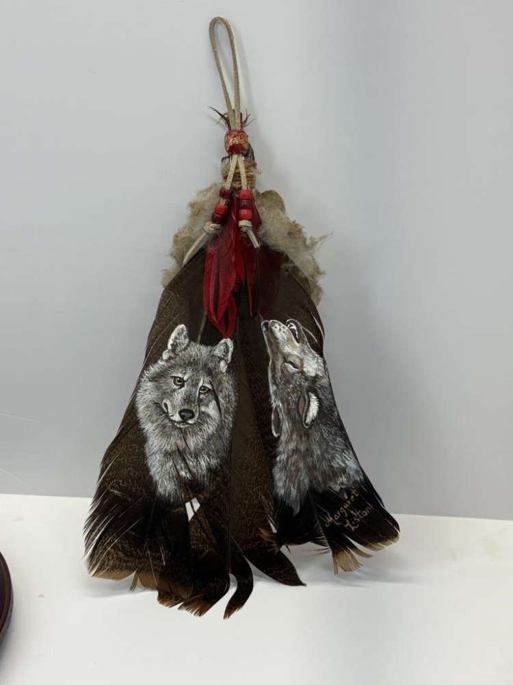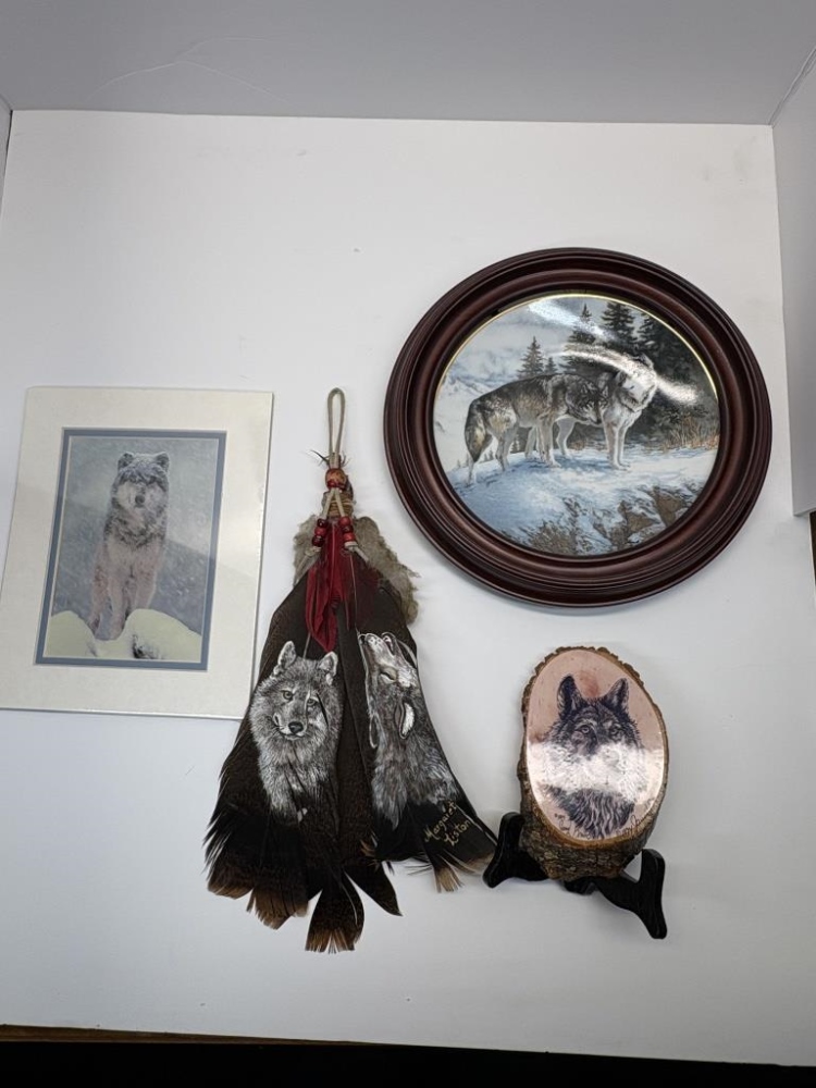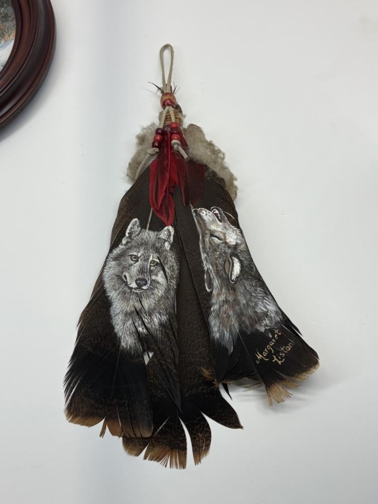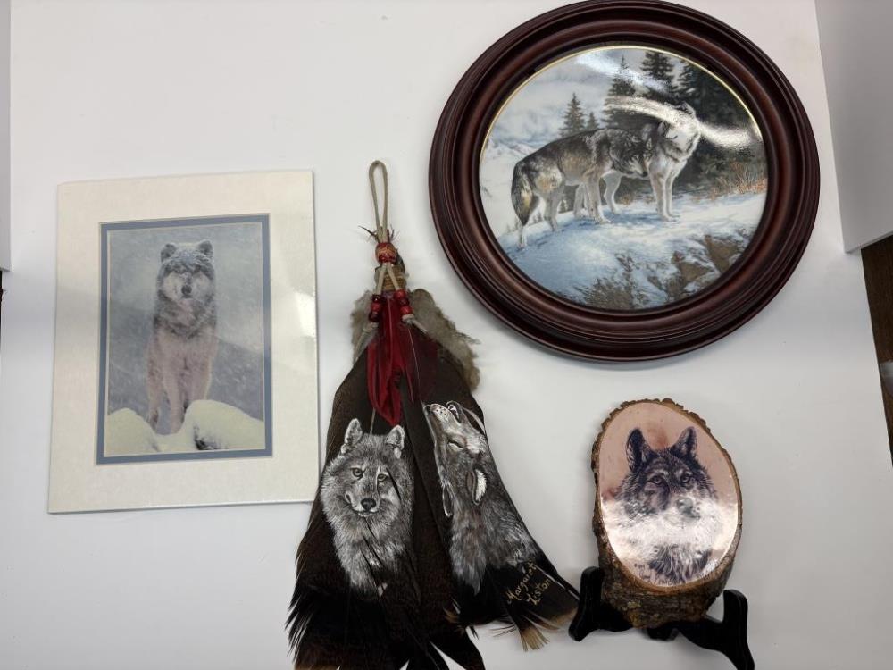FEATHERS, FRAMED PLATE, PICTURE, STAND, 2 STATUES