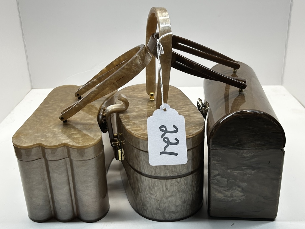 1950S-1960S BOX LIKE WITH CLASP LUCITE ACRYLIC PURSES
