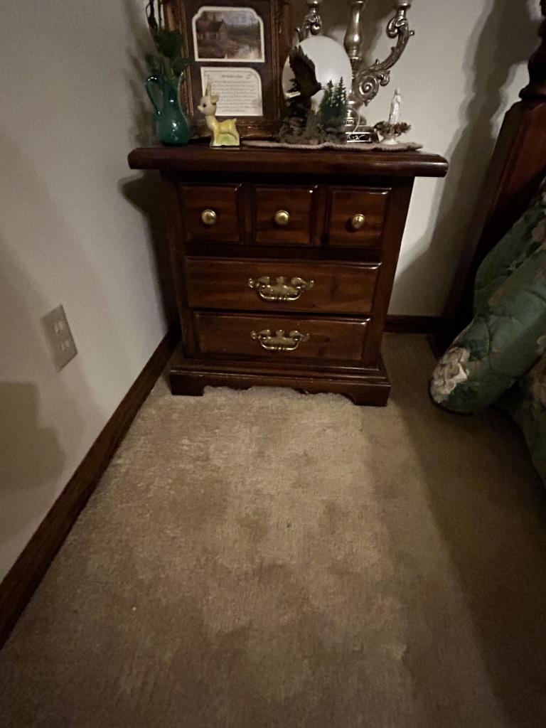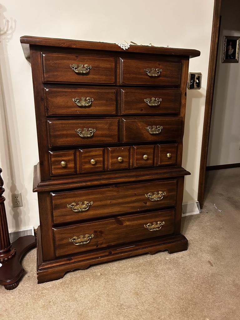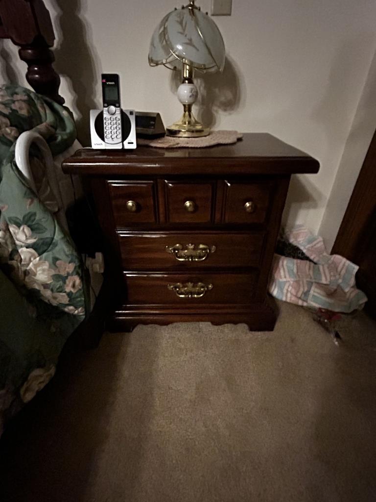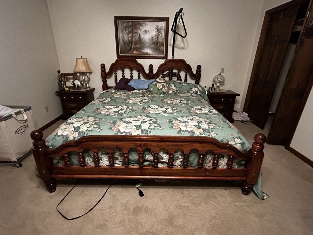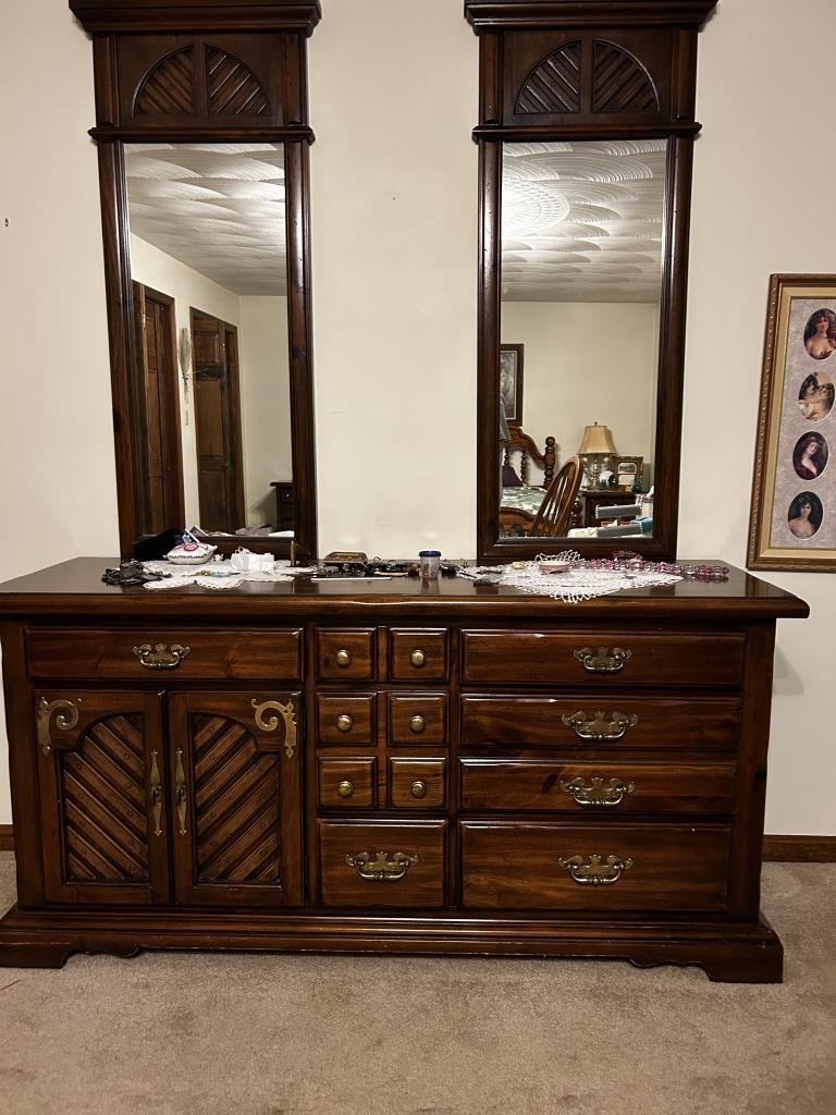 TWO NIGHTSTANDS, BED, DRESSER, DRESSER WITH DOUBLE MIRRORS