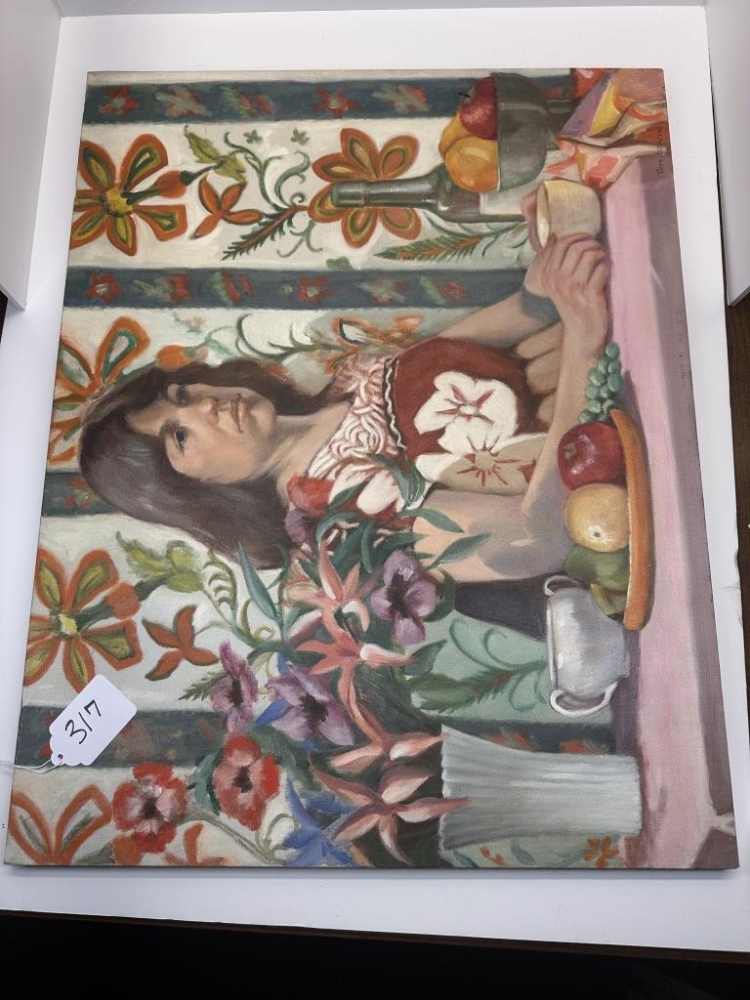 OIL PAINTING, WOMAN WITH FLOWERS