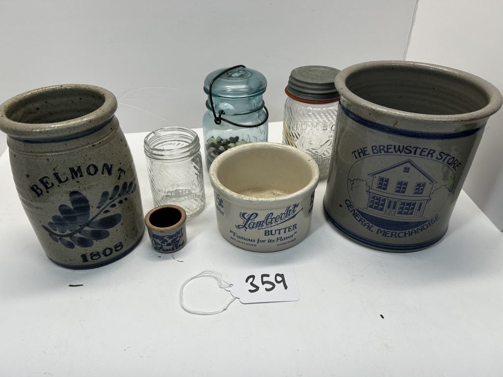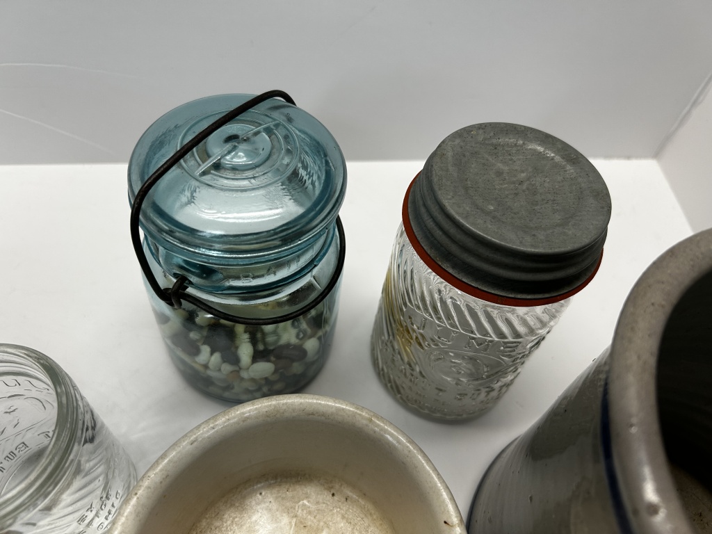 VINTAGE STONEWARE AND GLASS CONTAINERS