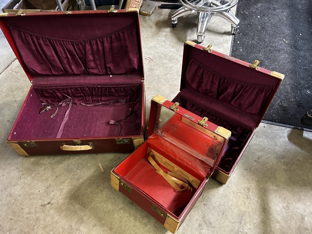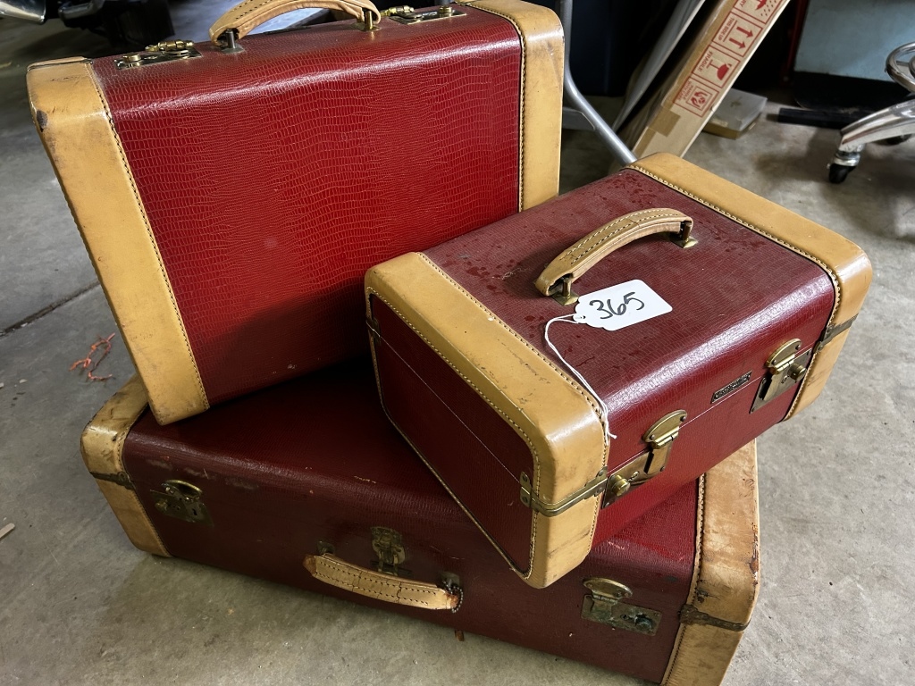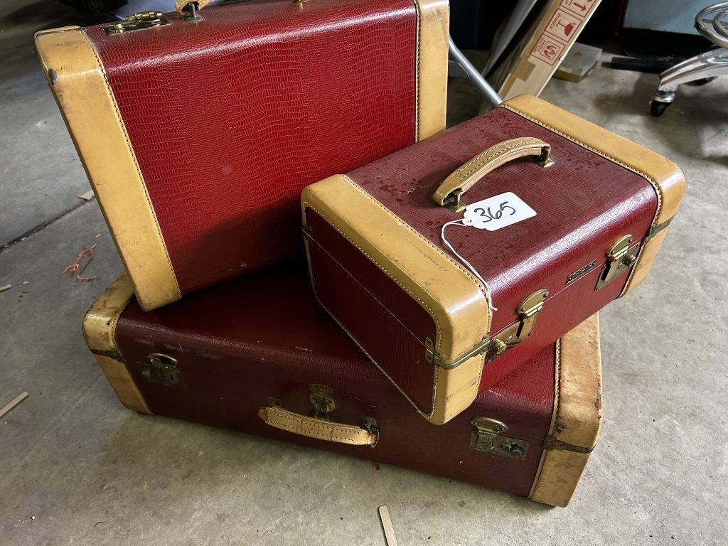 3 SUITCASES WITH HANDLE, RED COLORED