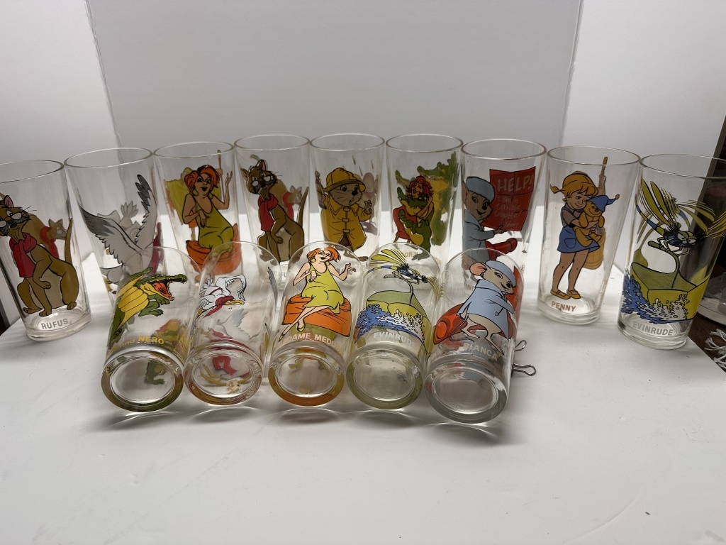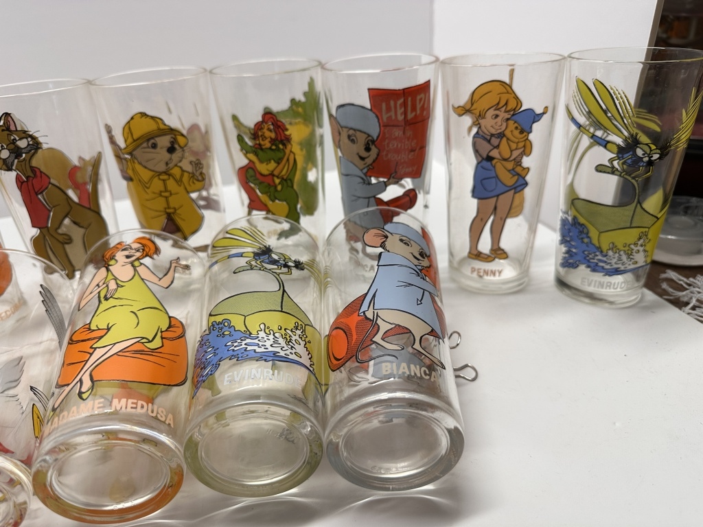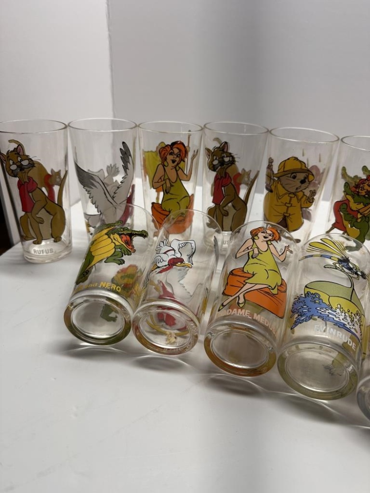BOX OF 14 GLASSES, WALT DISNEY PRODUCTIONS “THE RESCUERS” COLLECTOR SERIES
