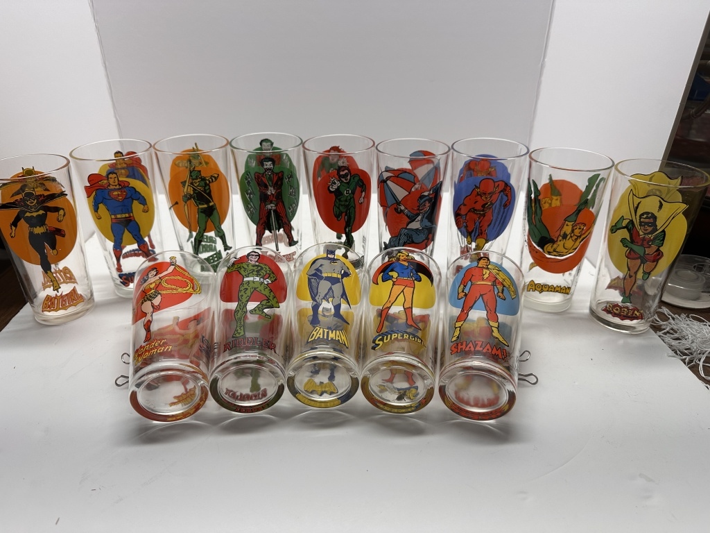 BOX OF 13 DC COMICS THEMED GLASSES