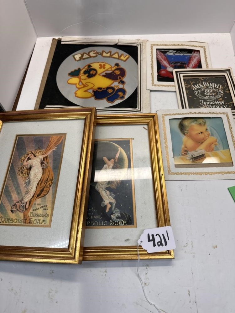 VARIETY OF 6 PICTURES, BUCHAN’S CARBOLIC SOAP, ANGEL, PACMAN, JACK DANIELS, CAR