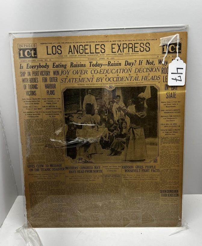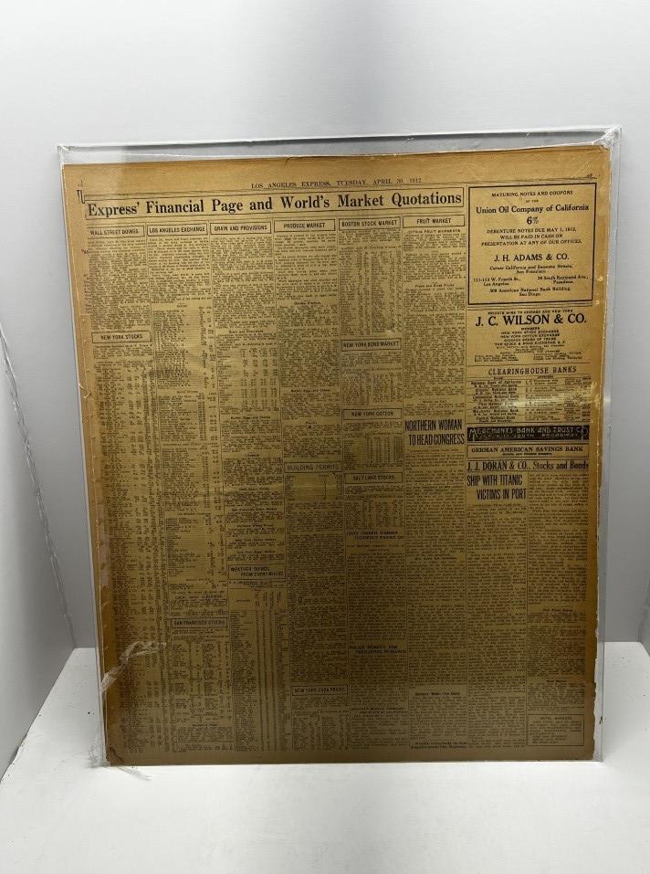 ANTIQUE NEWSPAPER, DATE: TUESDAY APRIL 30 1912