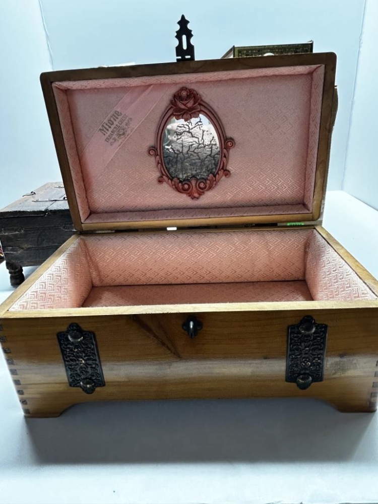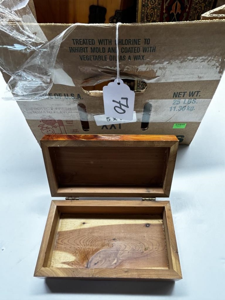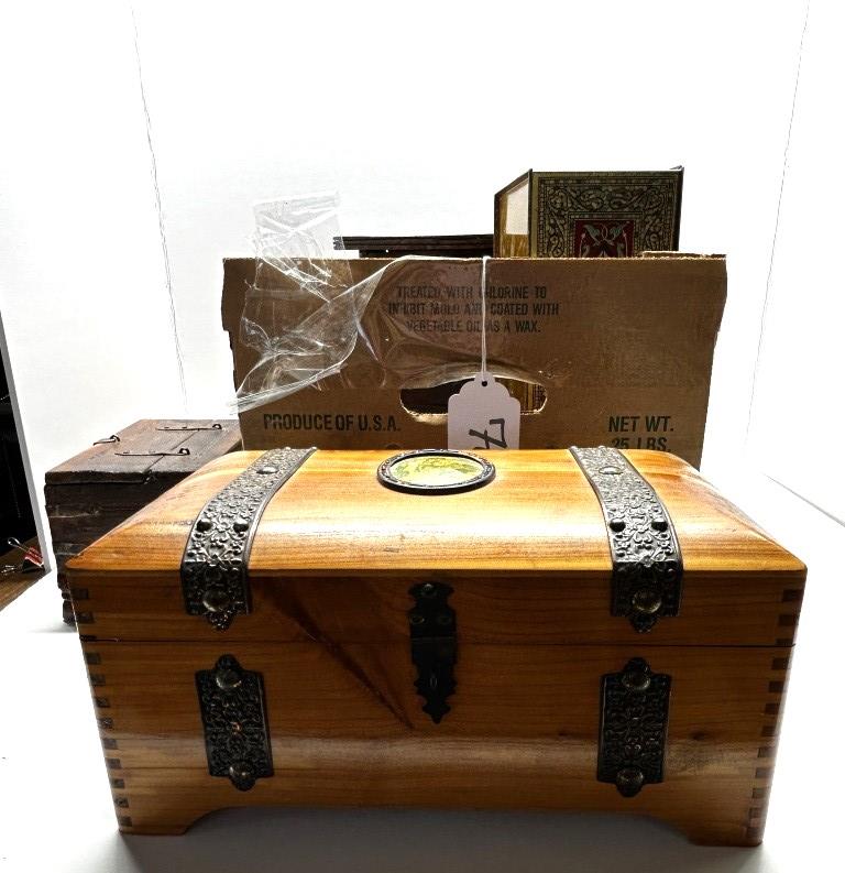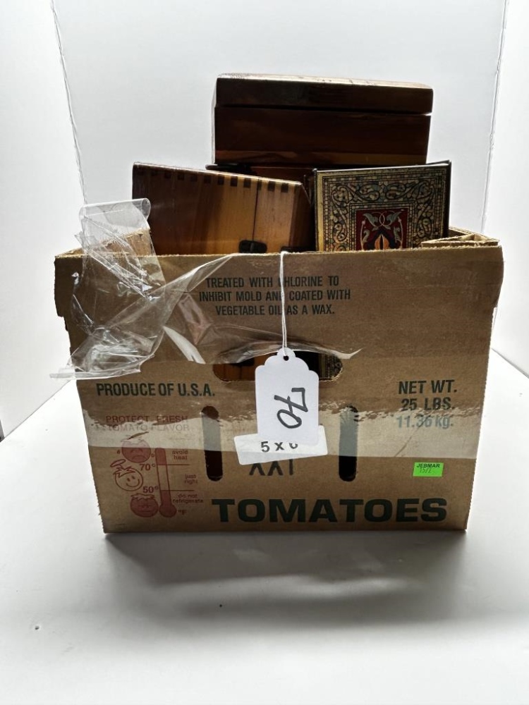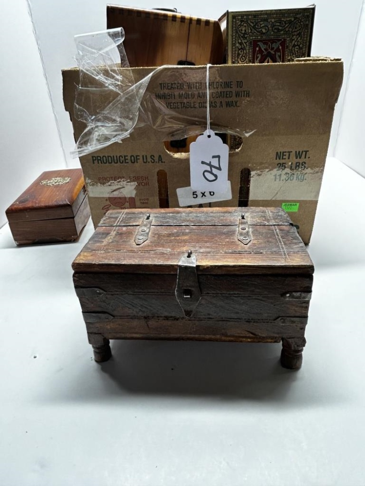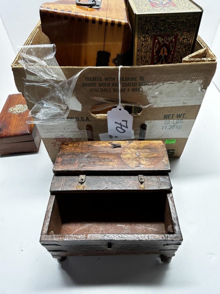 BOX OF MISCELLANEOUS WOODEN TRINKET BOXES, VARIOUS GOLDEN SEALS, SOME BOXES HAVE METAL CLASPS, SOME HAVE DRAWERS