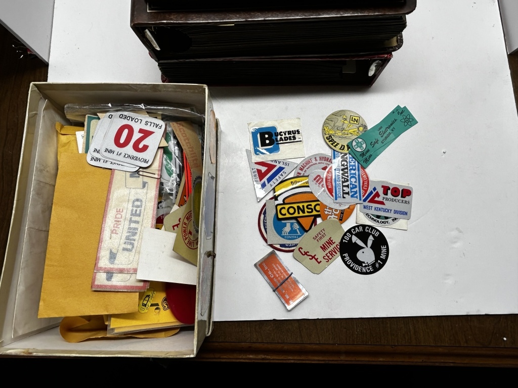 BOX OF OHIO COALS COLLECTIBLE STICKERS, 3 BINDERS WITH CONSOL OHIO COALS COLLECTIBLE STICKERS IN PLASTIC SLEEVES