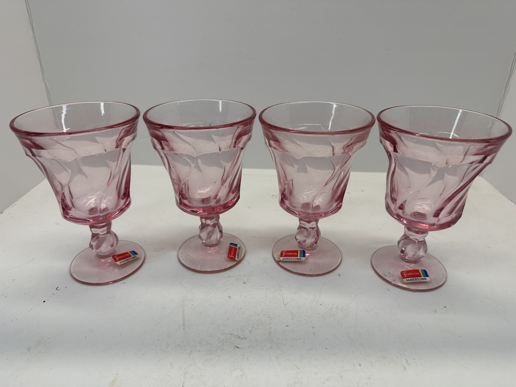 BOX OF MISCELLANEOUS ANTIQUE GLASSWARE, PINK GLASS CUPS
