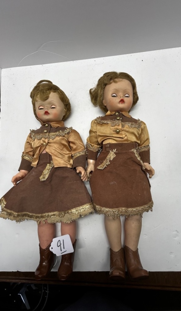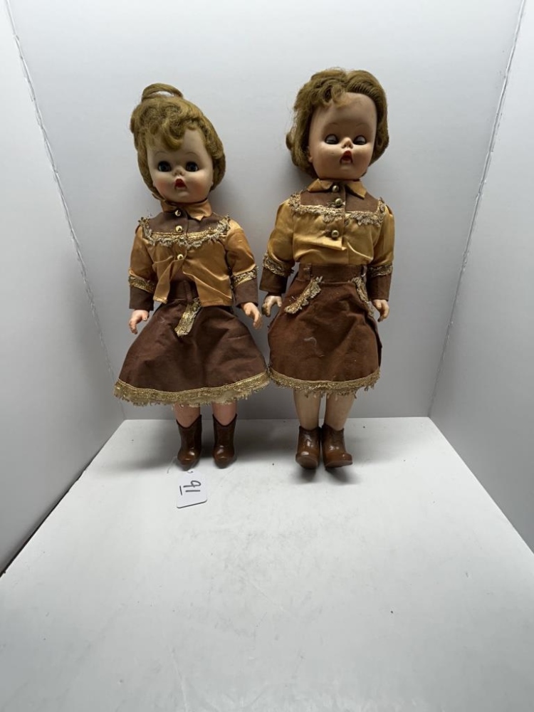 TWO ANTIQUE BABYDOLLS, MATCHING OUTFITS
