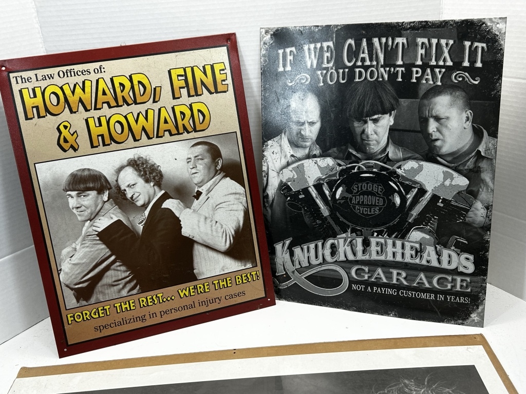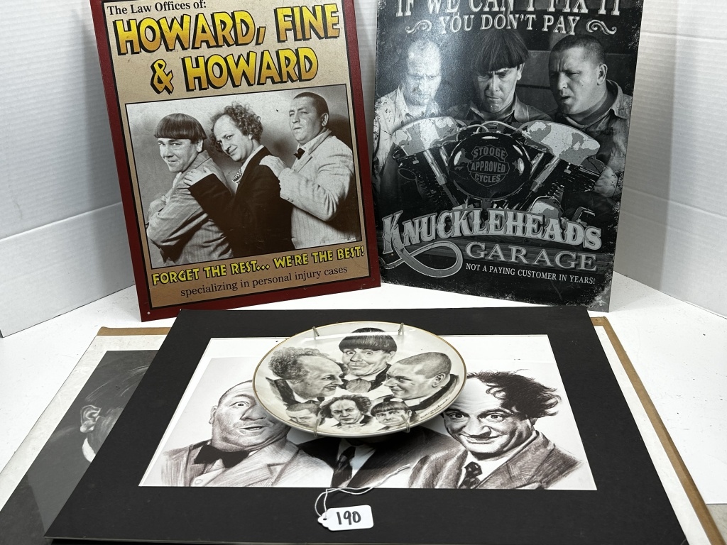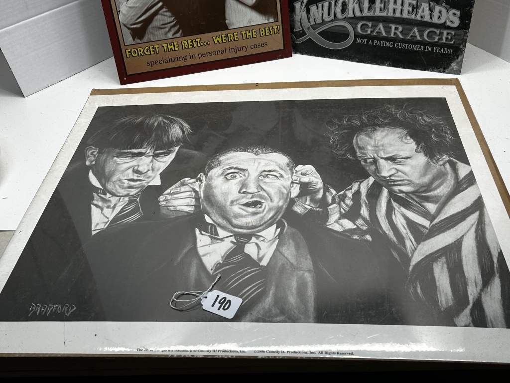2 SIGNS, 2 DRAWINGS, GLASS PLATE