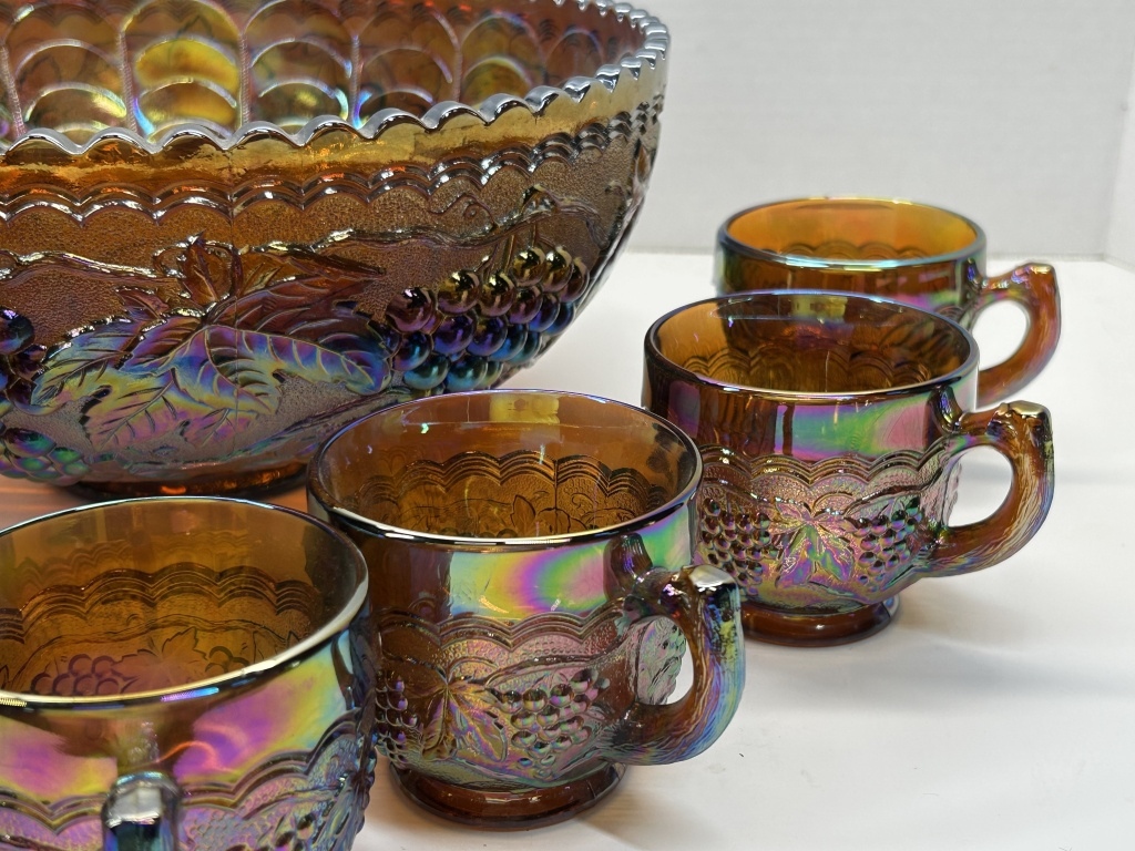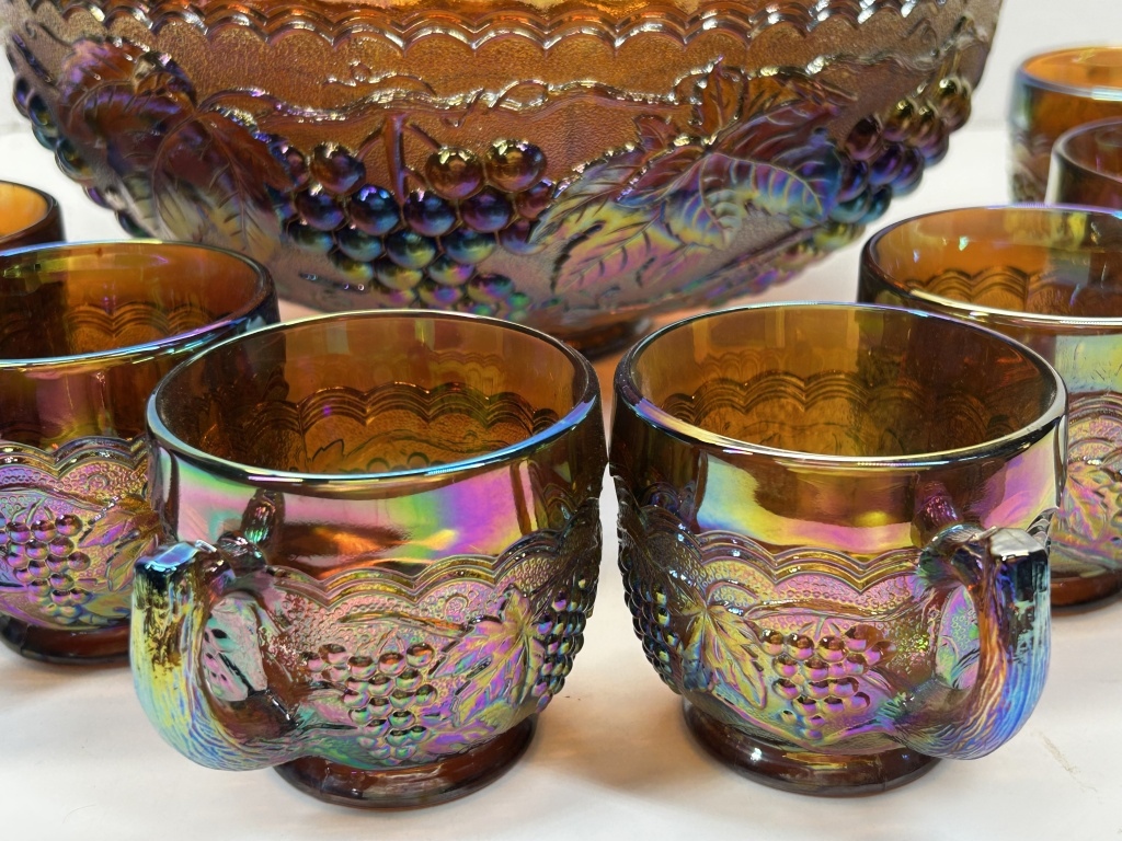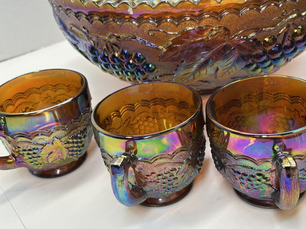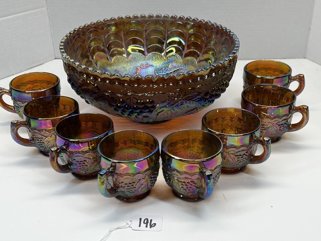 8 CUPS AND A LARGE PUNCH BOWL, ALL STAMPED ON BOTTOM