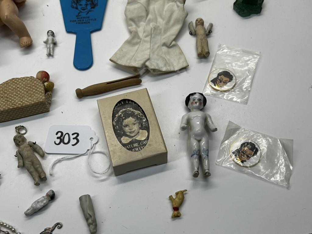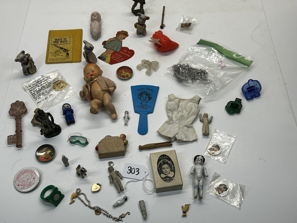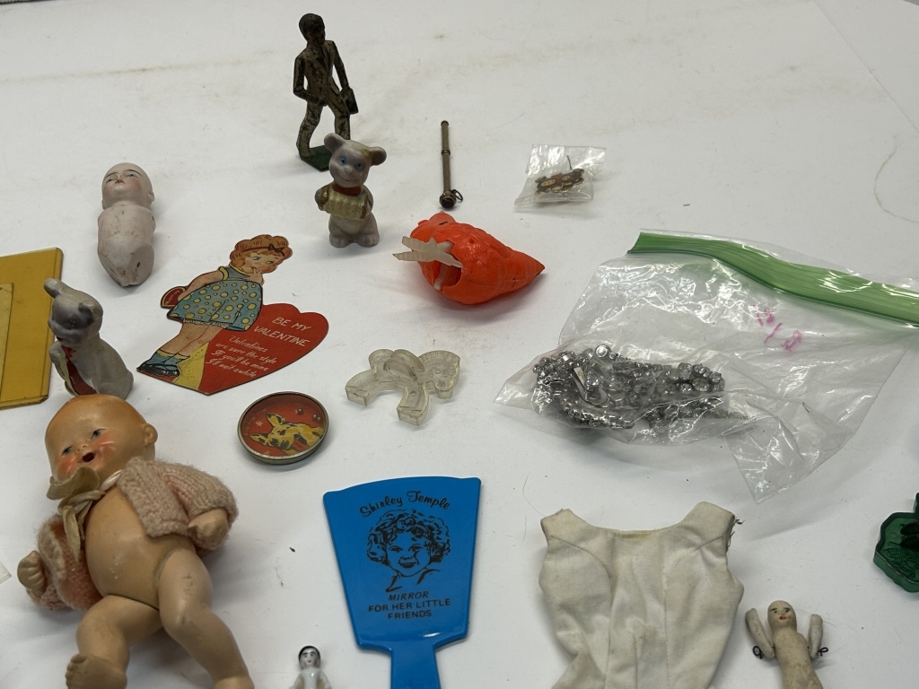 VINTAGE VALENTINE, MIRROR, SMALL FIGURINES, ADVERTISING PIECES, MORE