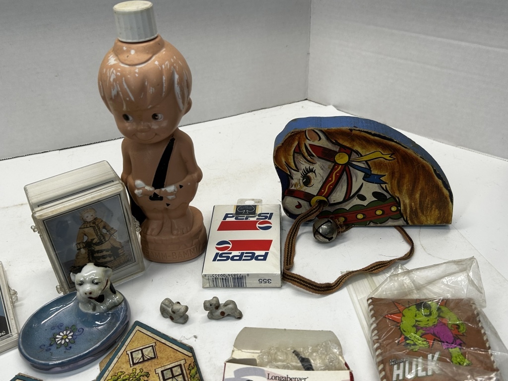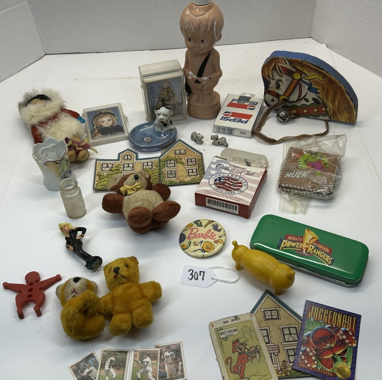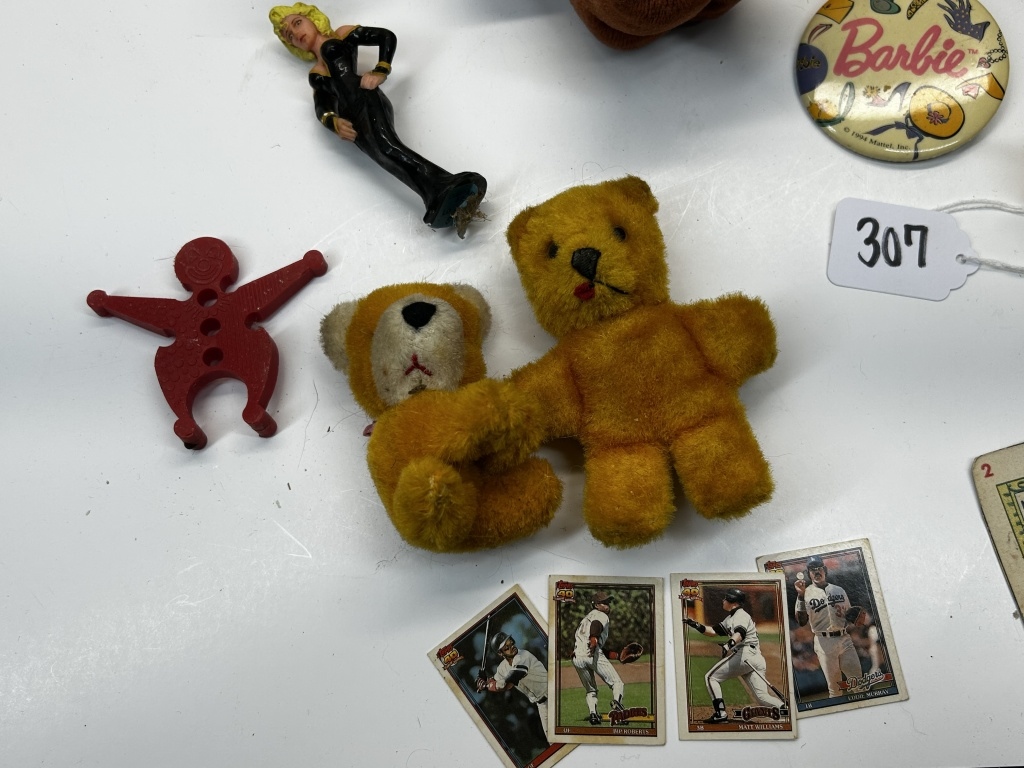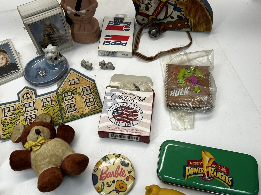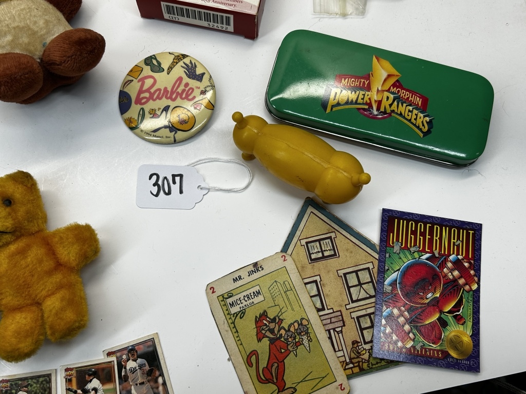 PLAYING CARDS, BARBIE PIN, HULK WALLET, SUPER HERO ITEMS