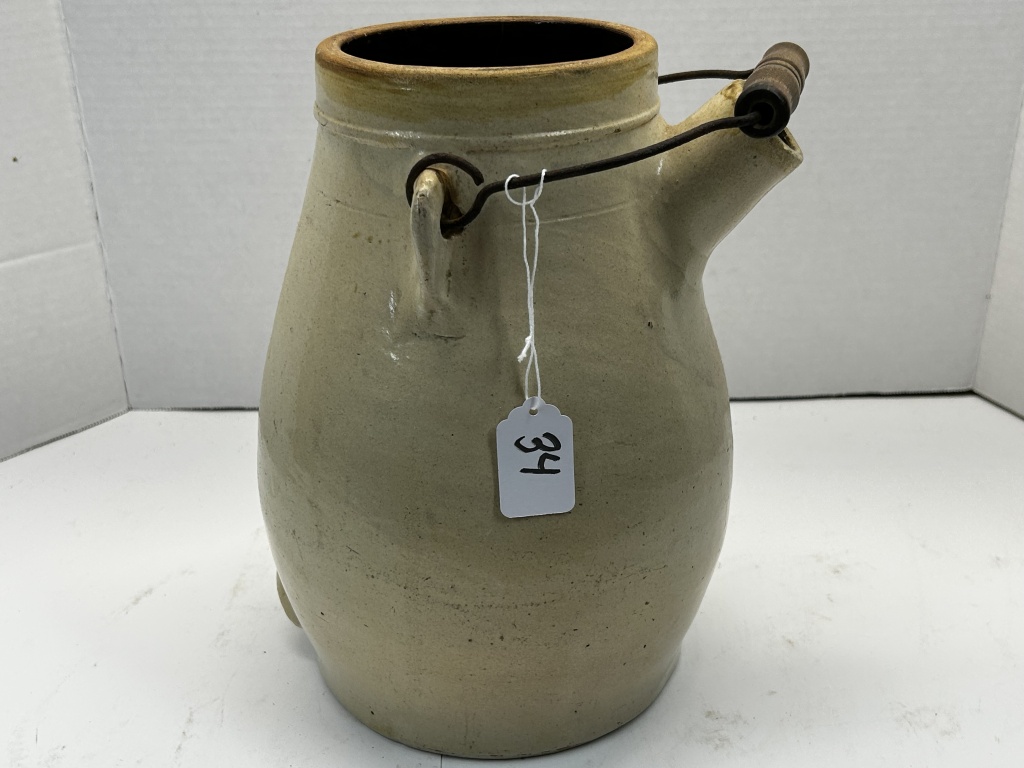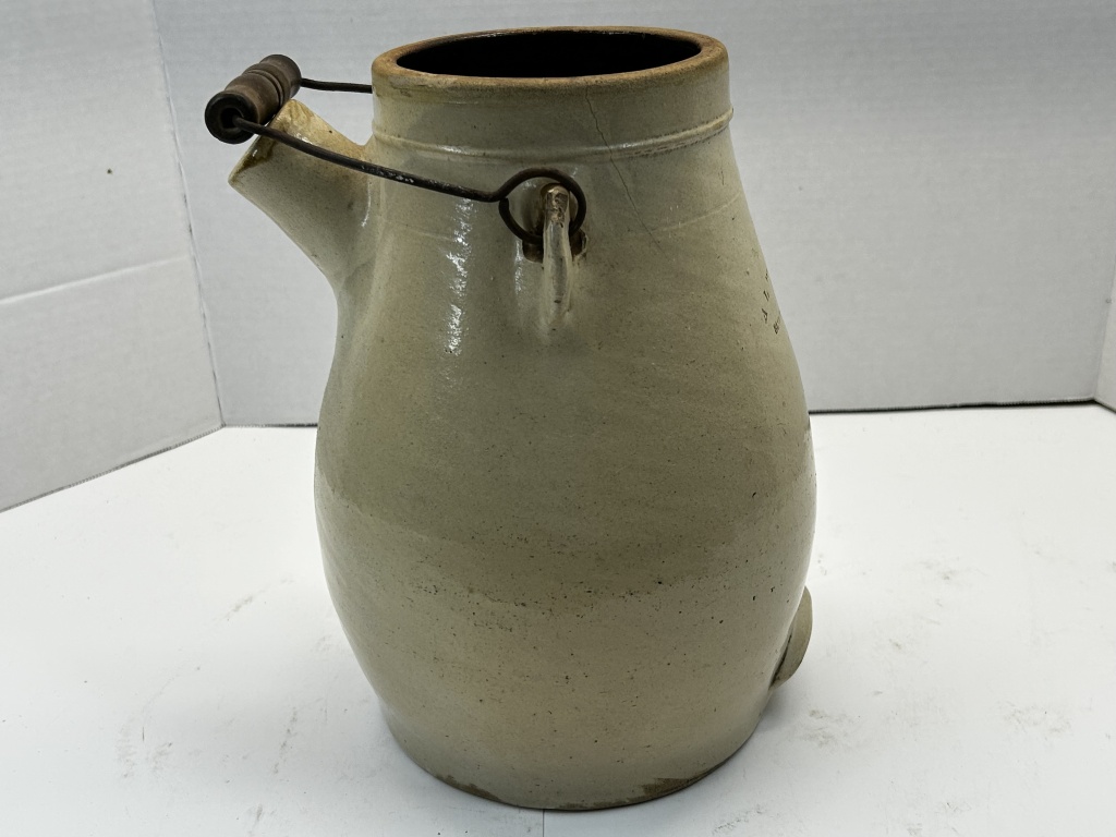 BATTER PAIL STONEWARE WITH HANDLE “A. L. HYSSONG BLOOMSBURG” IMPRINT 142 11.5″ X 7.5″