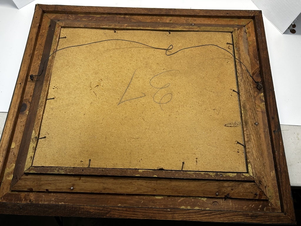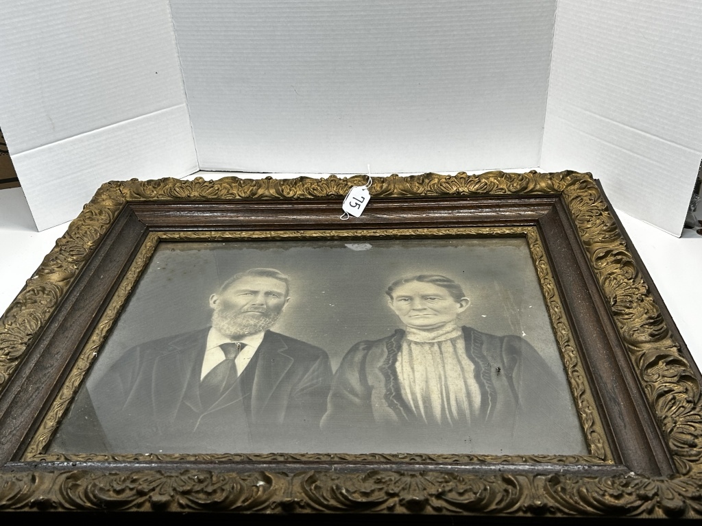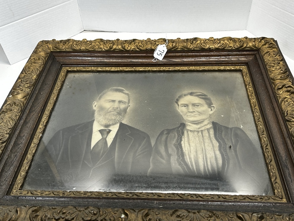 1900’S VINTAGE MAN & WOMAN WITH WOOD FRAME PICTURE 25″X29″