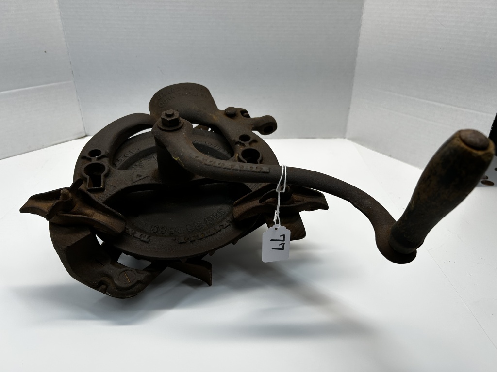 HAND CRANK BALCK HAWK CORN SHELLER A.H. PATOH JULY 2, 1889