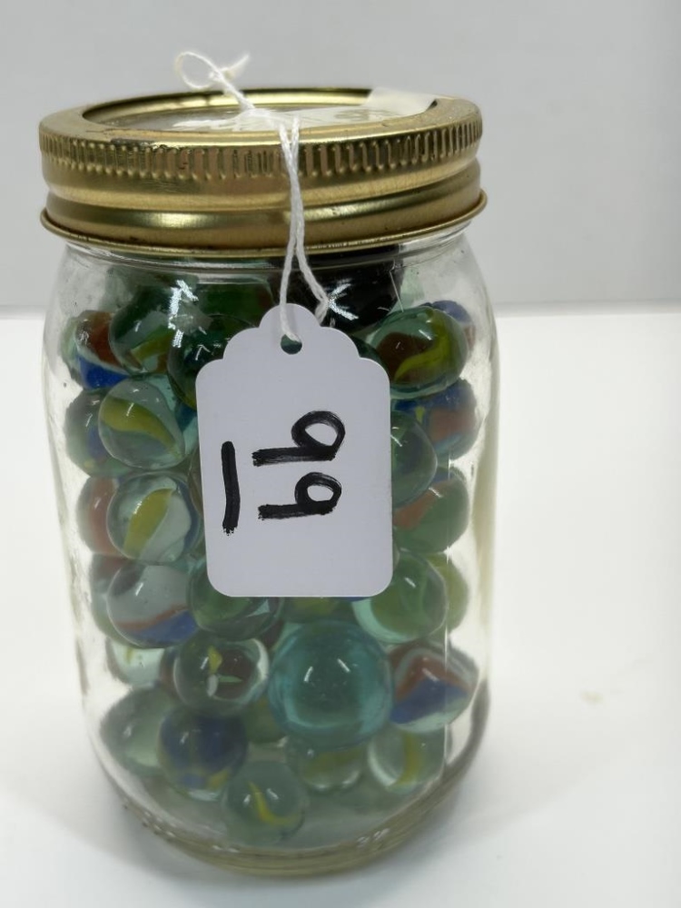 CATS EYE MASON JAR FULL OF MARBLES