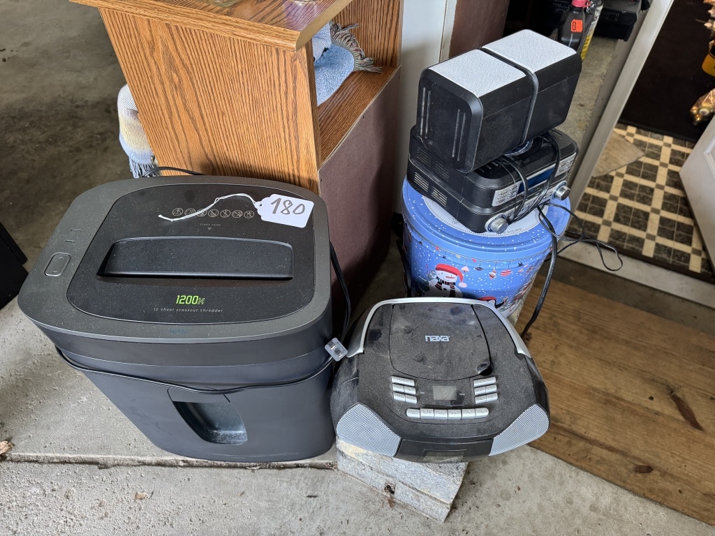 PAPER SHREDDER, RADIOS, SPEAKERS, ETC