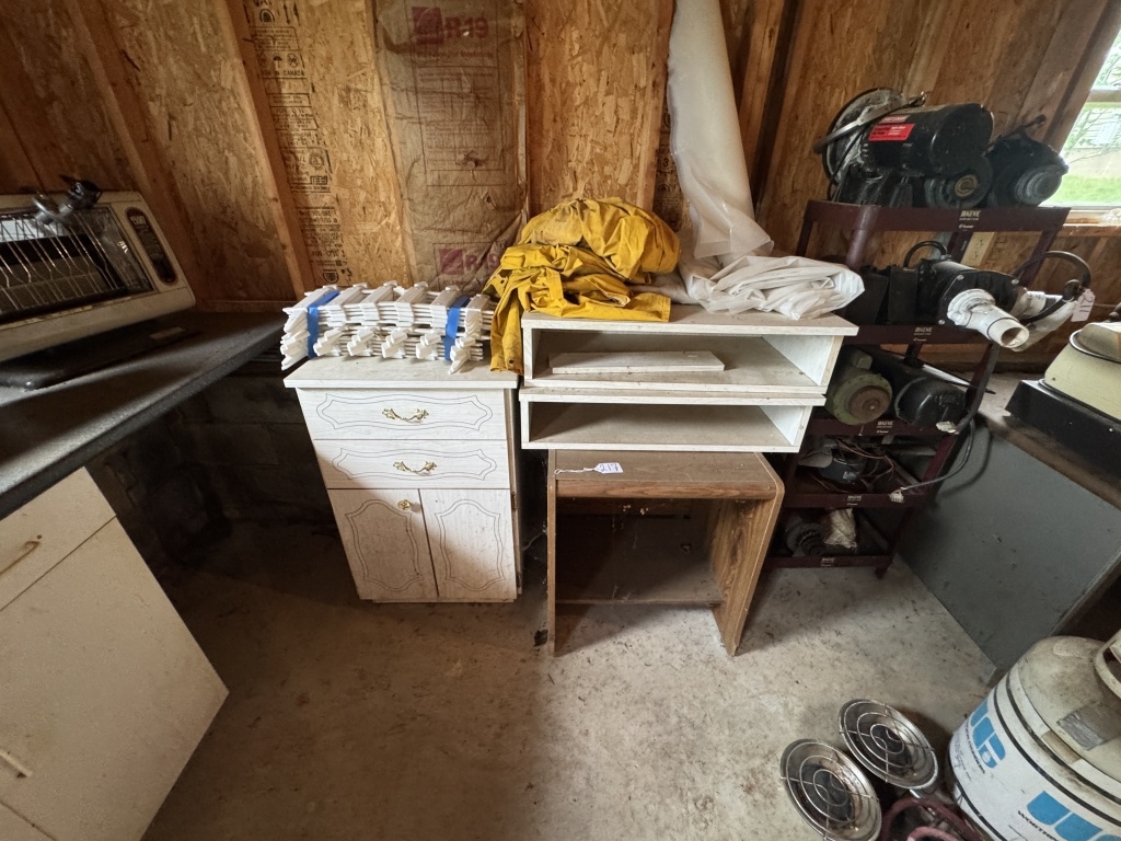 3 SHELVES, PICKET FENCE, ETC