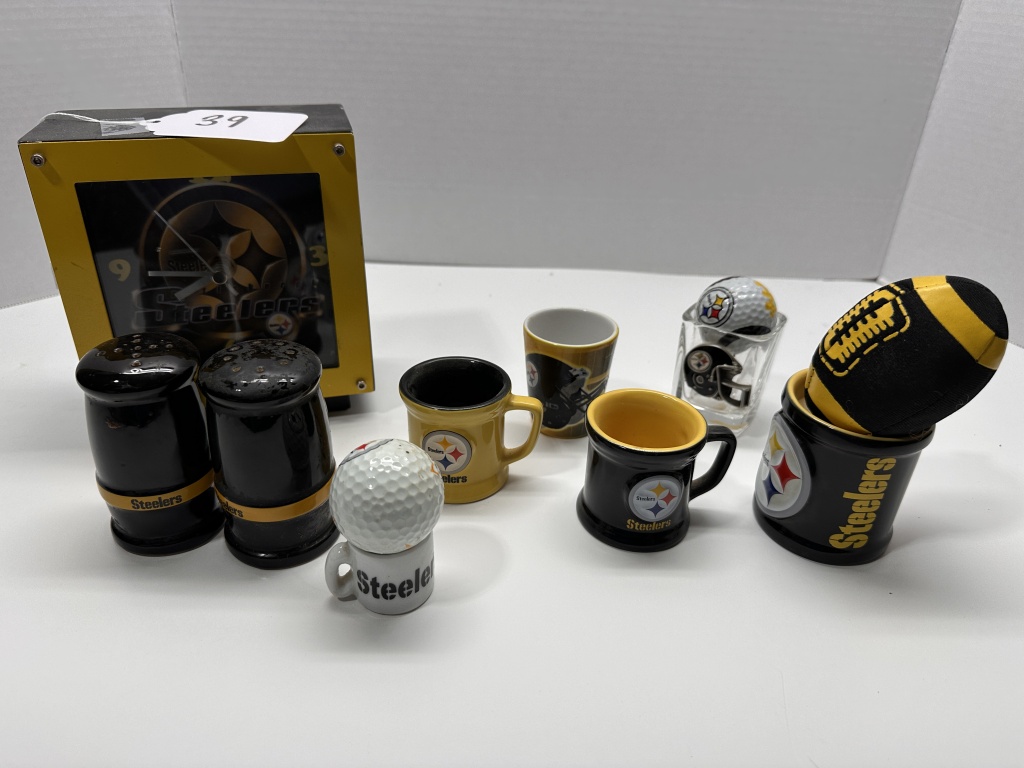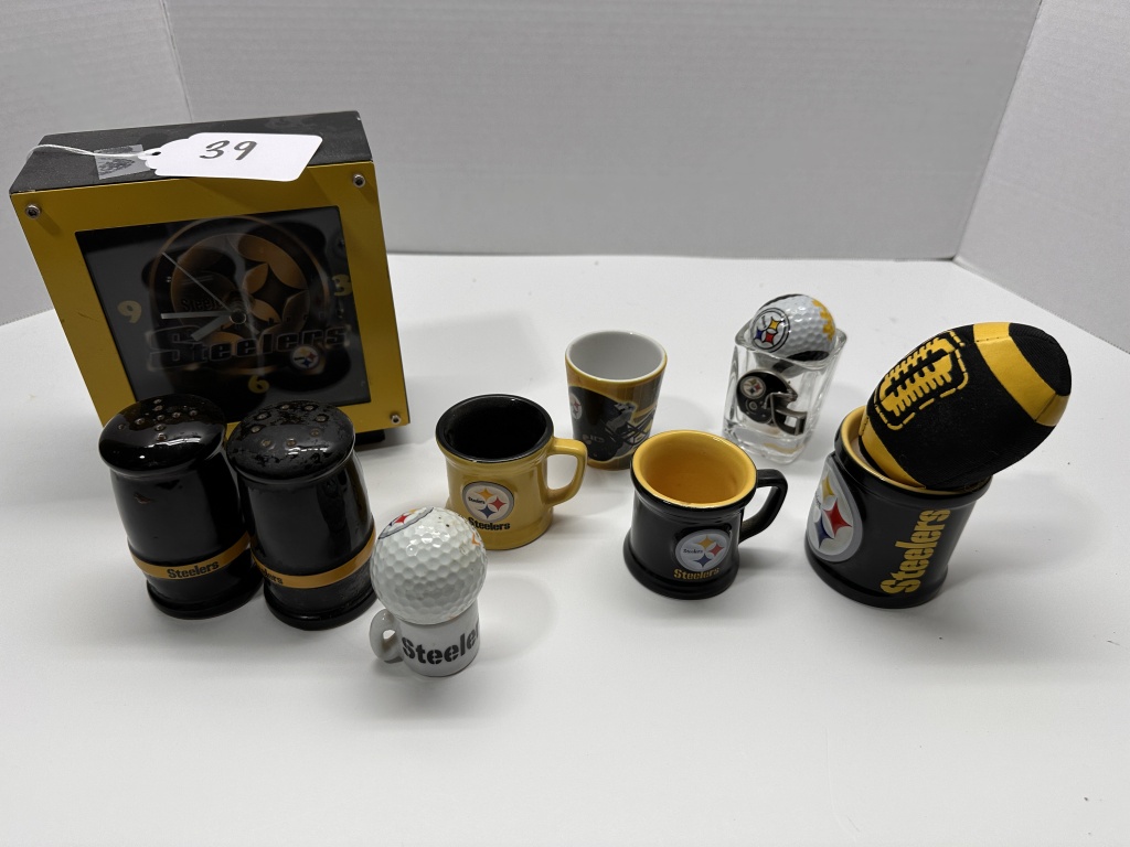 SHOT GLASSES, CLOCK, SALT & PEPPER SHAKERS, AND GOLF BALLS