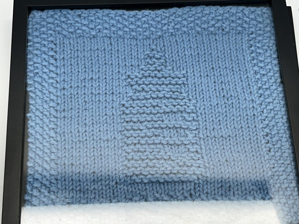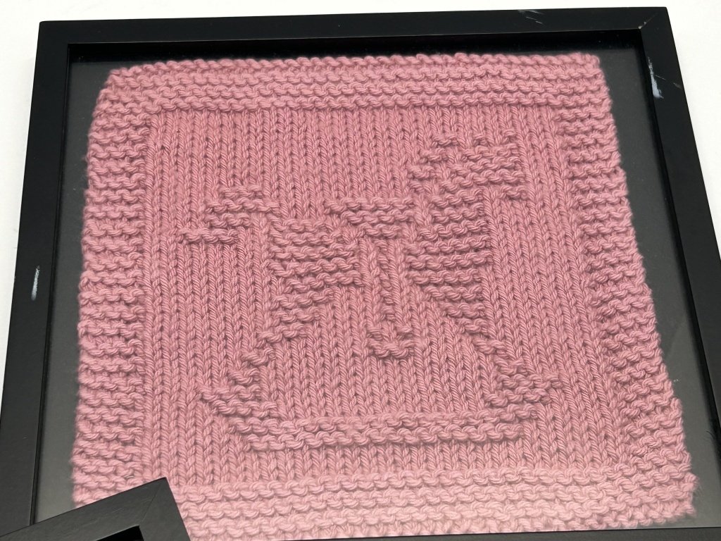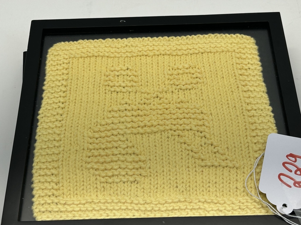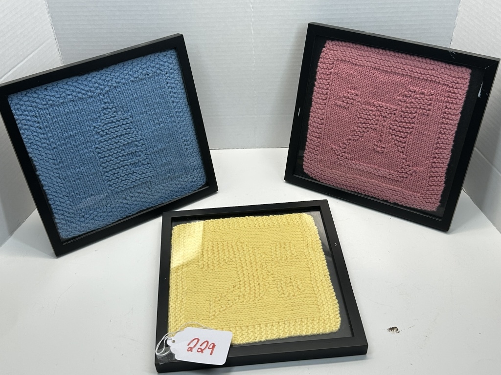 3 KNITTED PICTURES, YELLOW, PINK, BLUE