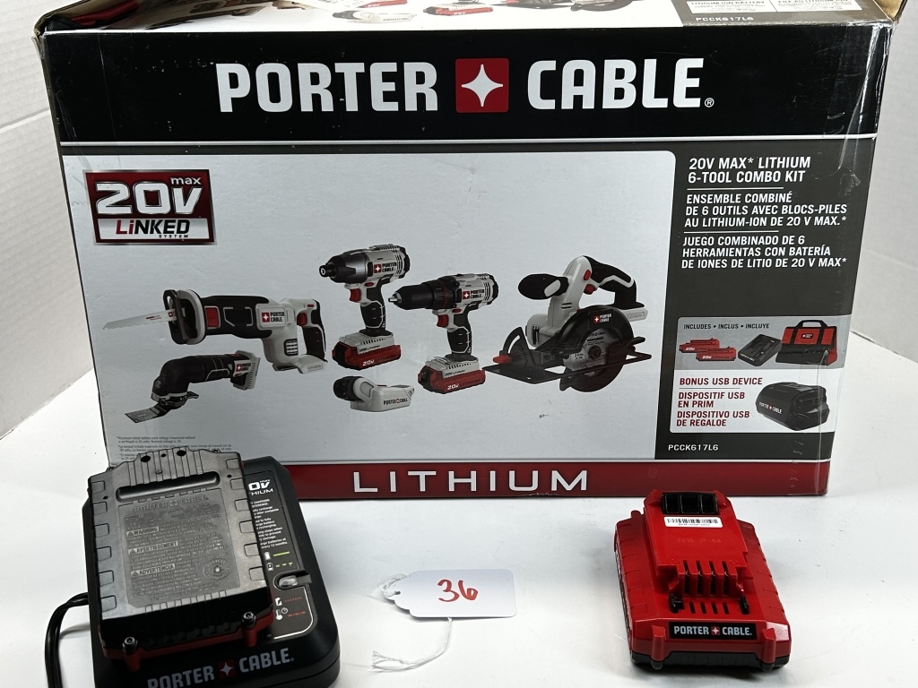PORTER CABLE 20V MAX LITHIUM 6-TOOL COMBO KIT, 2 ADDITIONAL BATTERIERS & CHARGERS