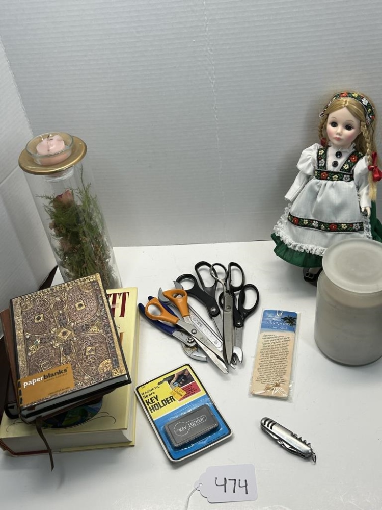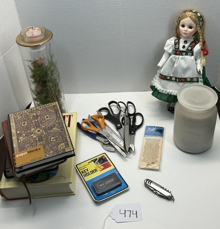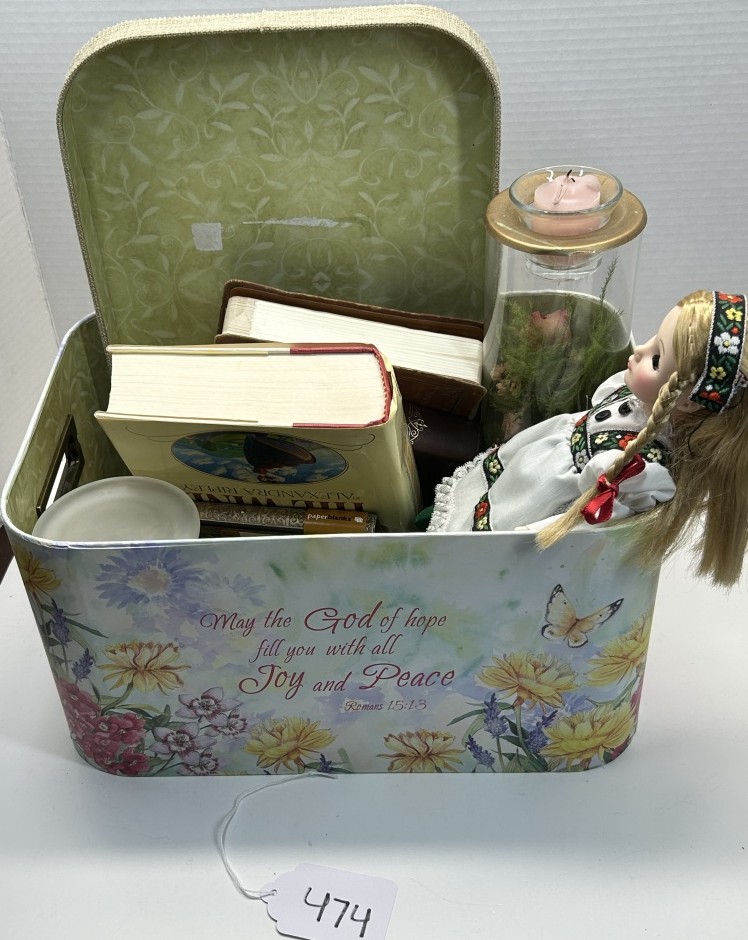 ROMANS 15:13 BOX WITH LID, BOOKS, DOLL, SCISSORS, KEY HOLDER, CANDLES