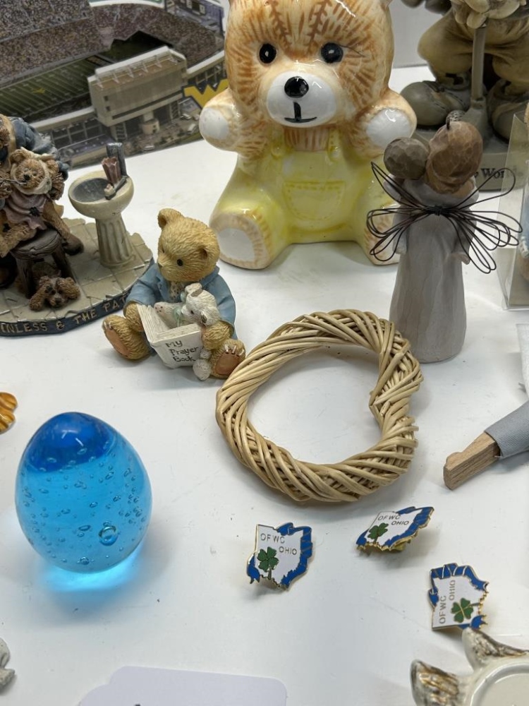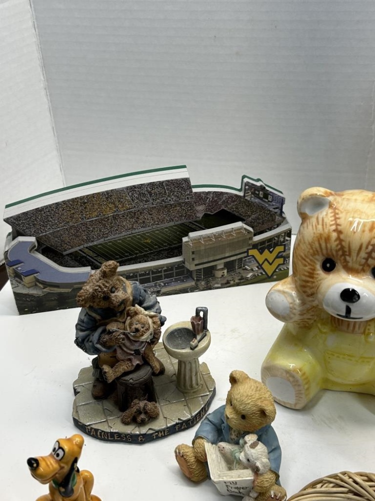 BEAR FIGURES, WEST VIRGINIA UNIVERSITY STADIUM, PINS, EGG, ETC
