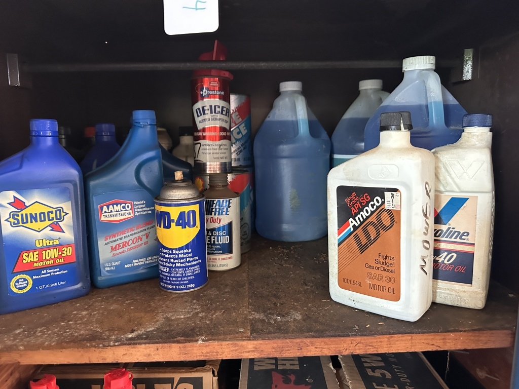 WD-40, MOTOR OIL, TRANSMISSION FLUID, DE-ICER, ETC