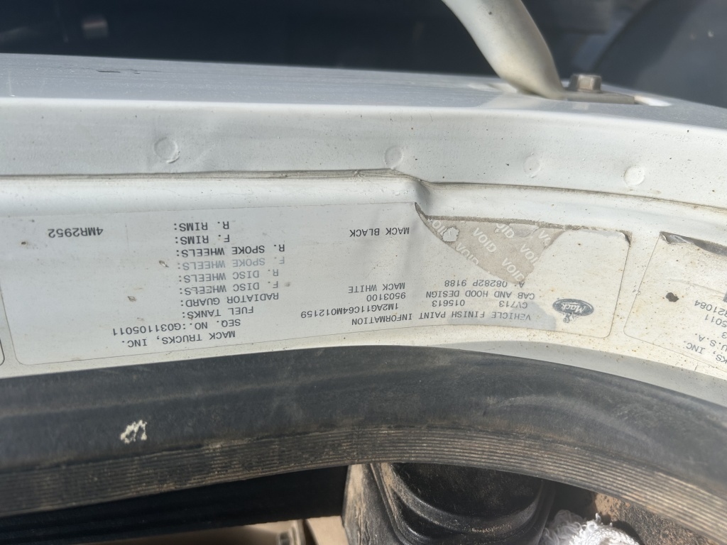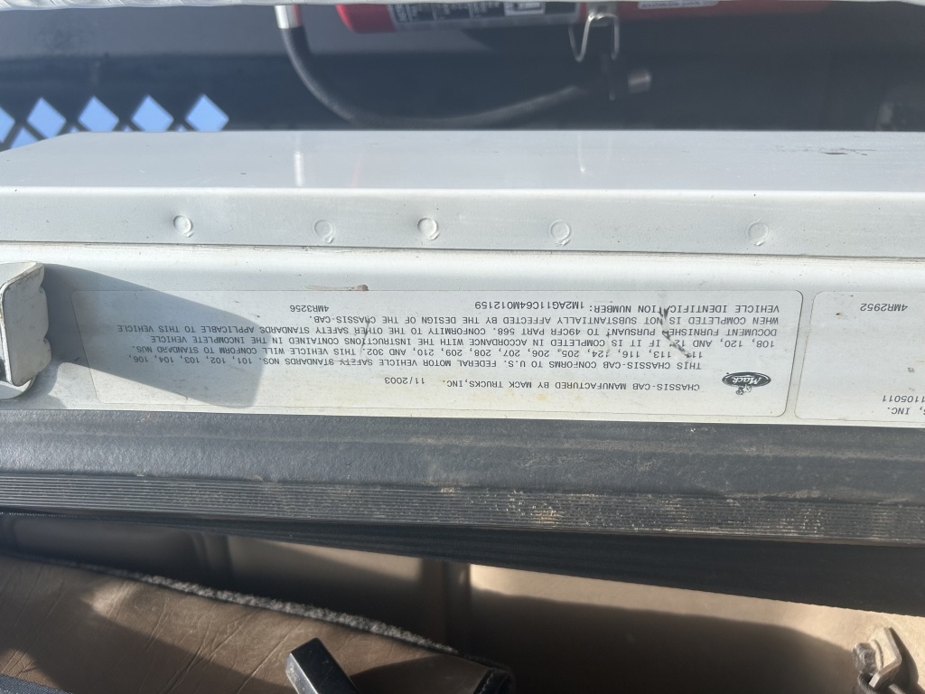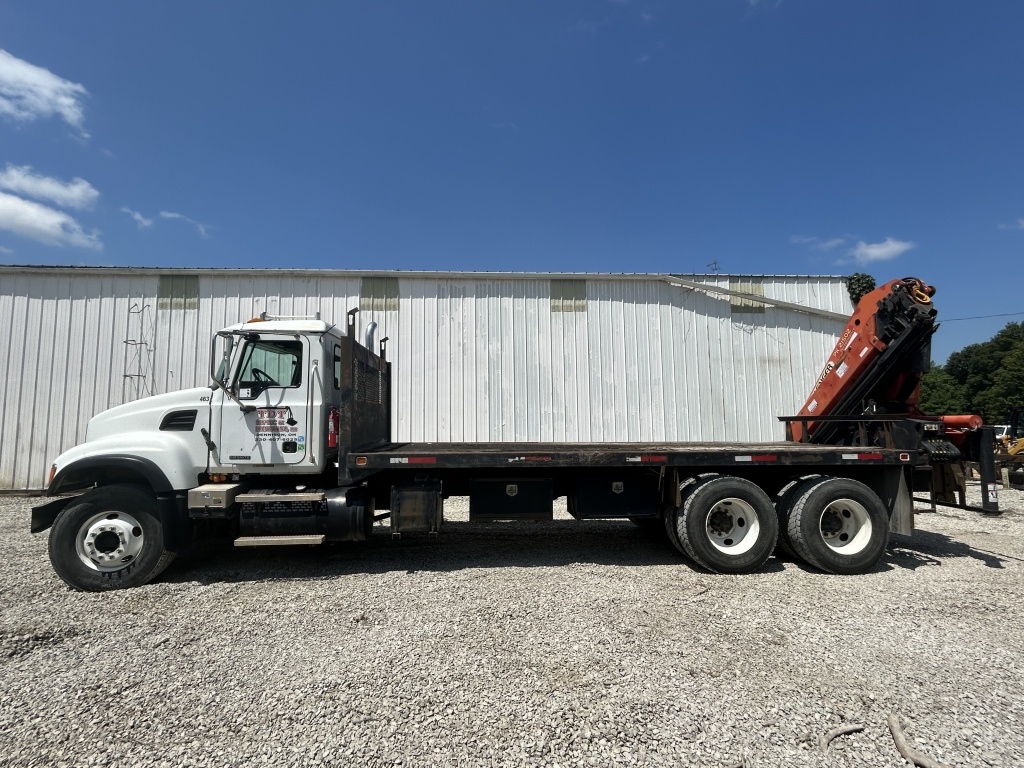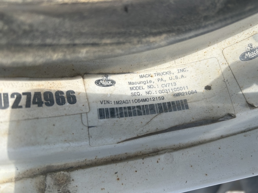 2003 MACK SEMI LENTH OF BED FT 316188 MILES MODEL CV713 VIN NO 1M2AG11C64M012159 CRANE WORKS BUT NEEDS KEY SWITCH MACHINE IS SET UP REMOTE BUT NO REMOTE INCLUDED CRANE M AKE PALFINGGER TYPE PK21502