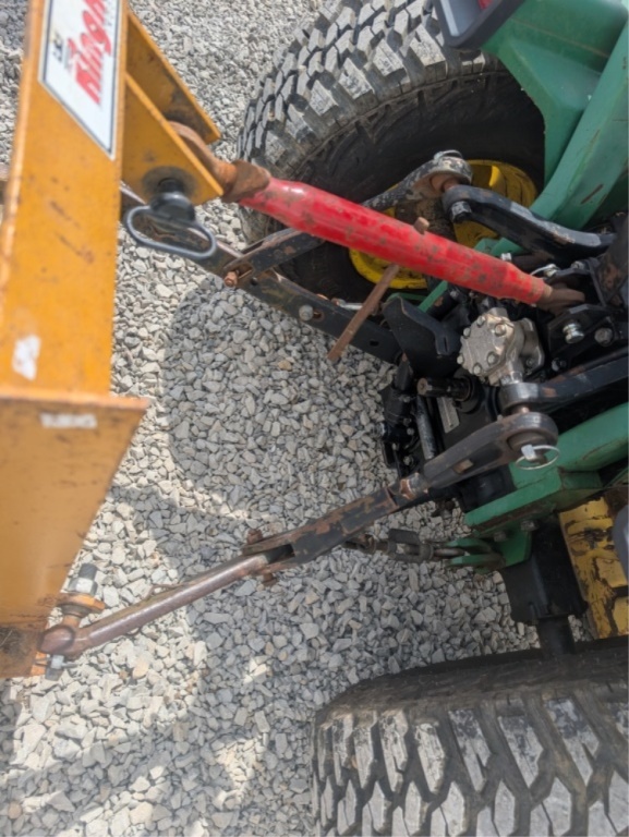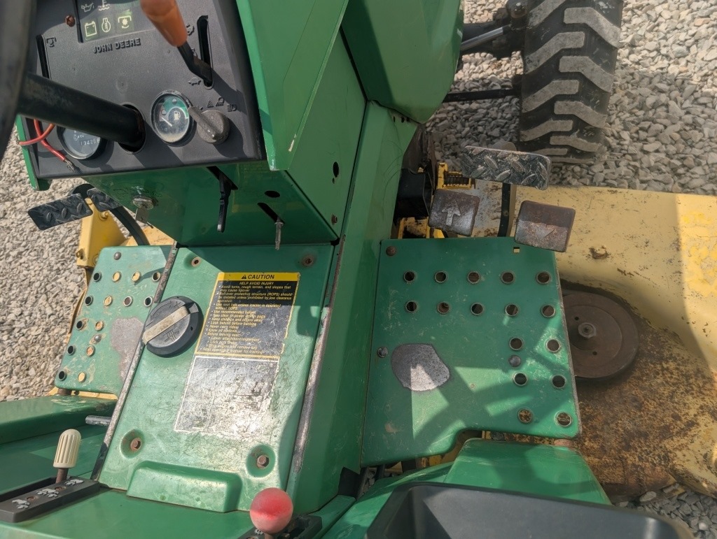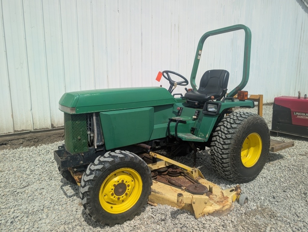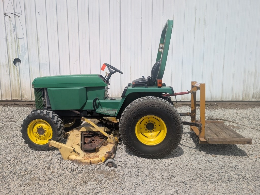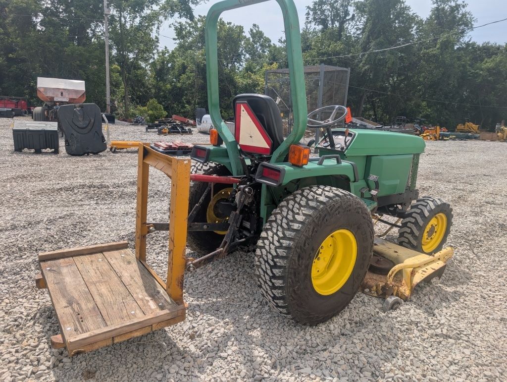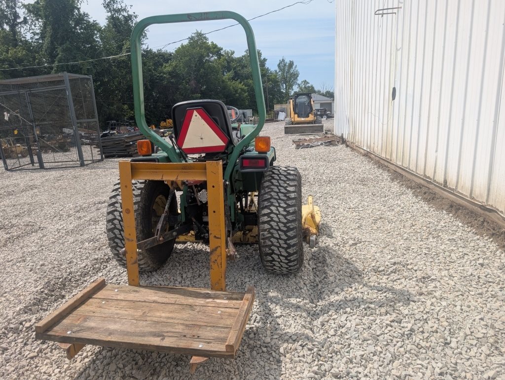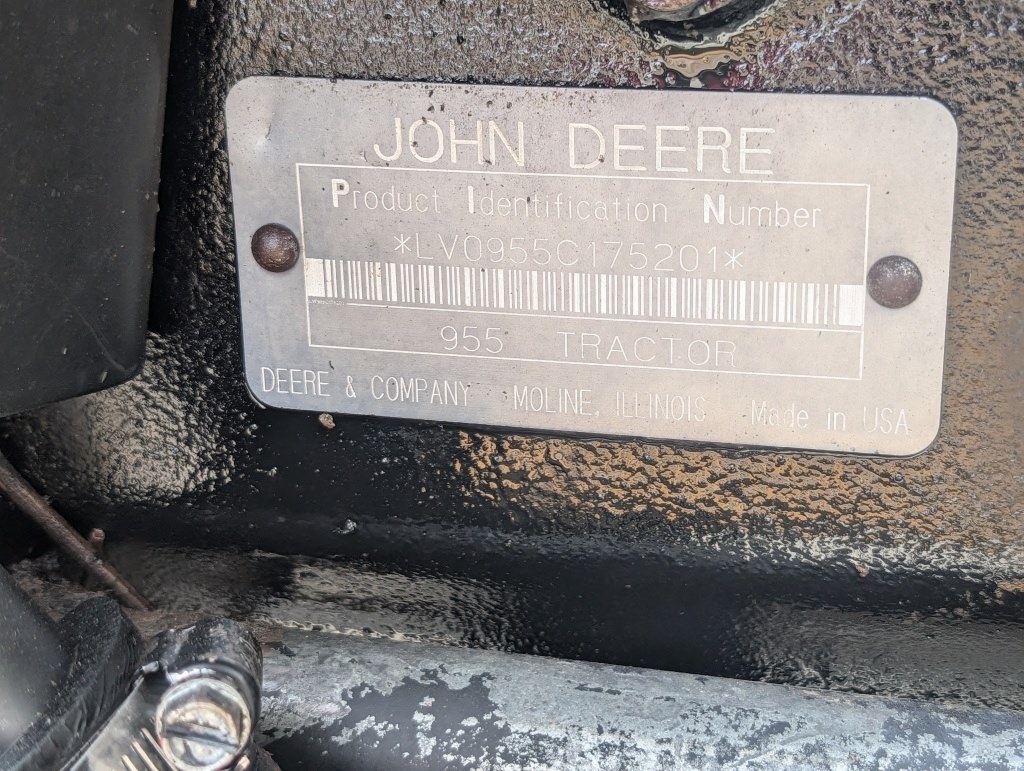 JOHN DEER 955 TRACTOR WITH PLATFORM ATTACHED TO THE BACK AND BRUSH HOG TO THE BOTTOM SERIAL NUMBER LV0955C175201