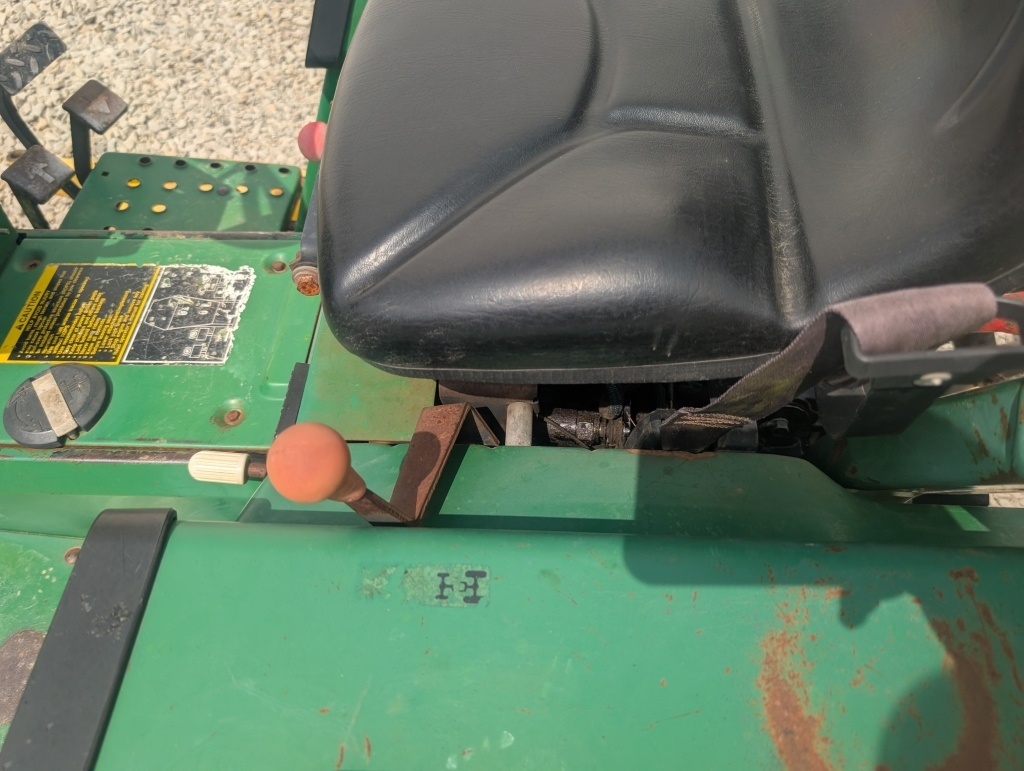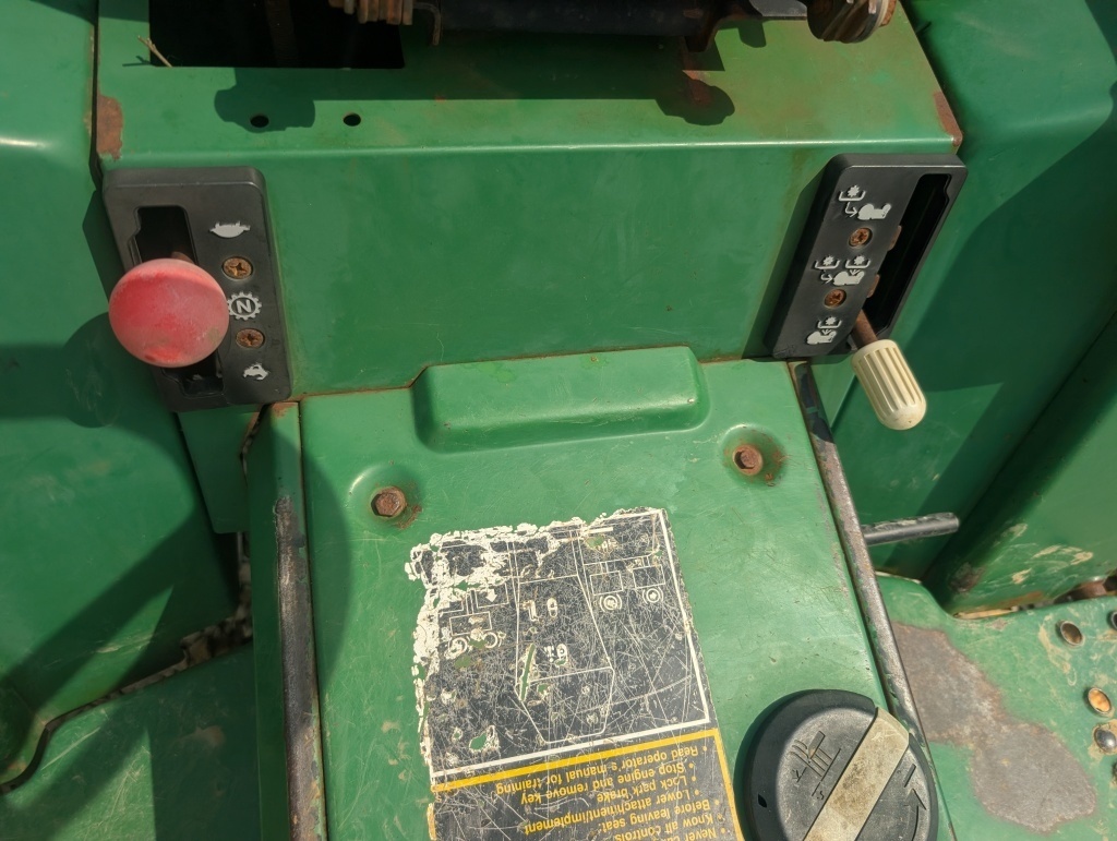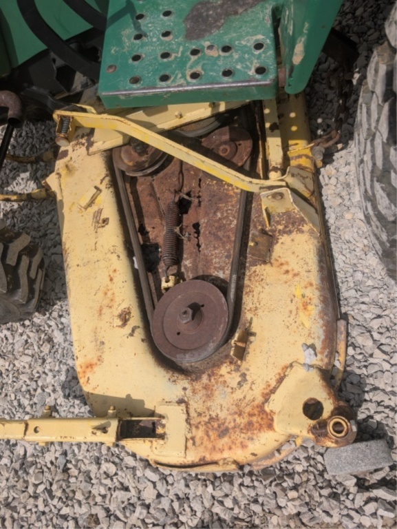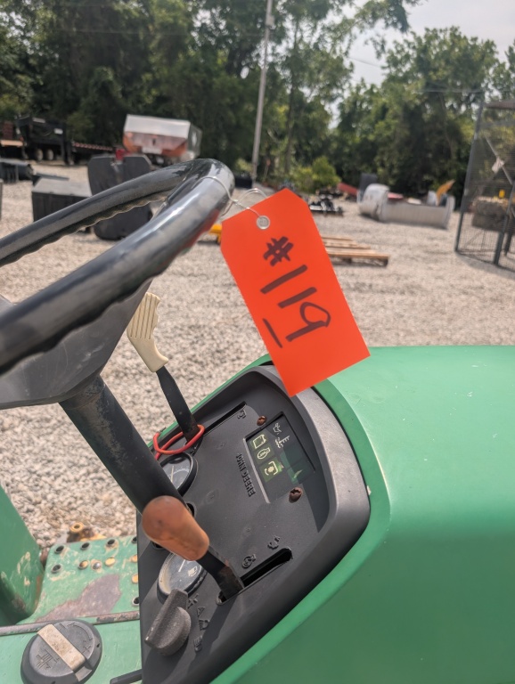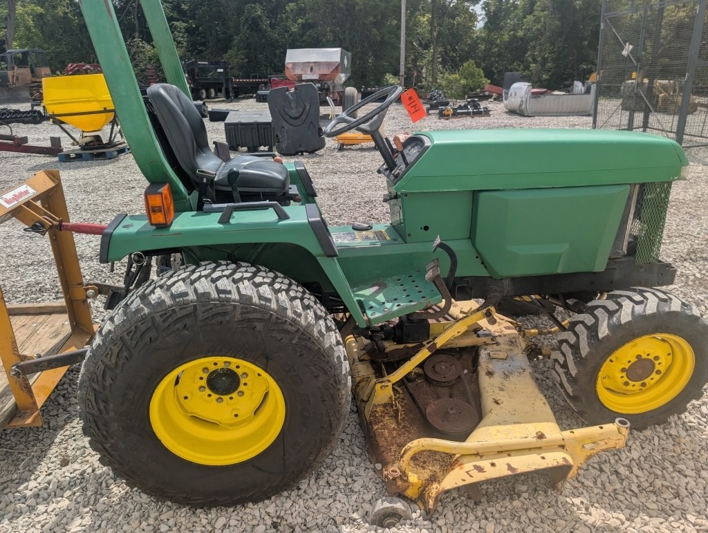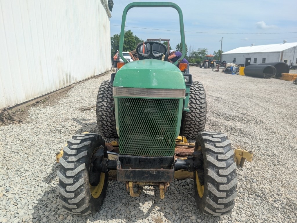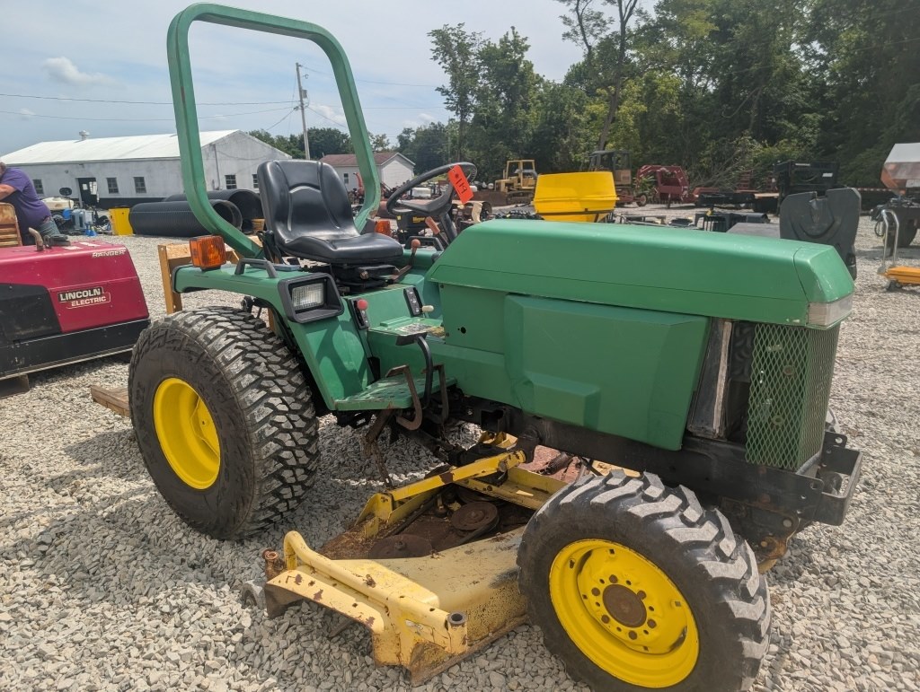 JOHN DEER 955 TRACTOR WITH PLATFORM ATTACHED TO THE BACK AND BRUSH HOG TO THE BOTTOM SERIAL NUMBER LV0955C175201